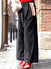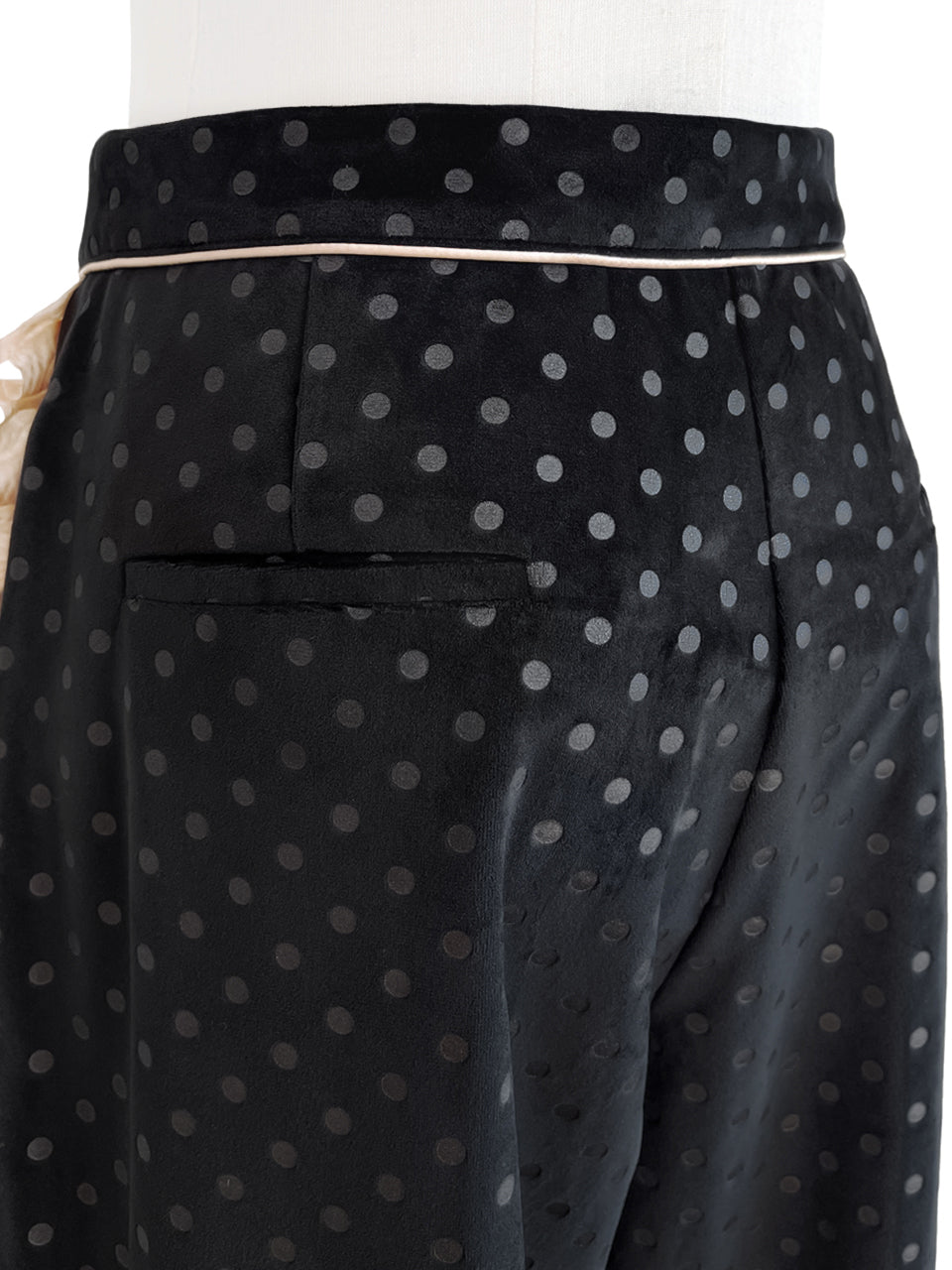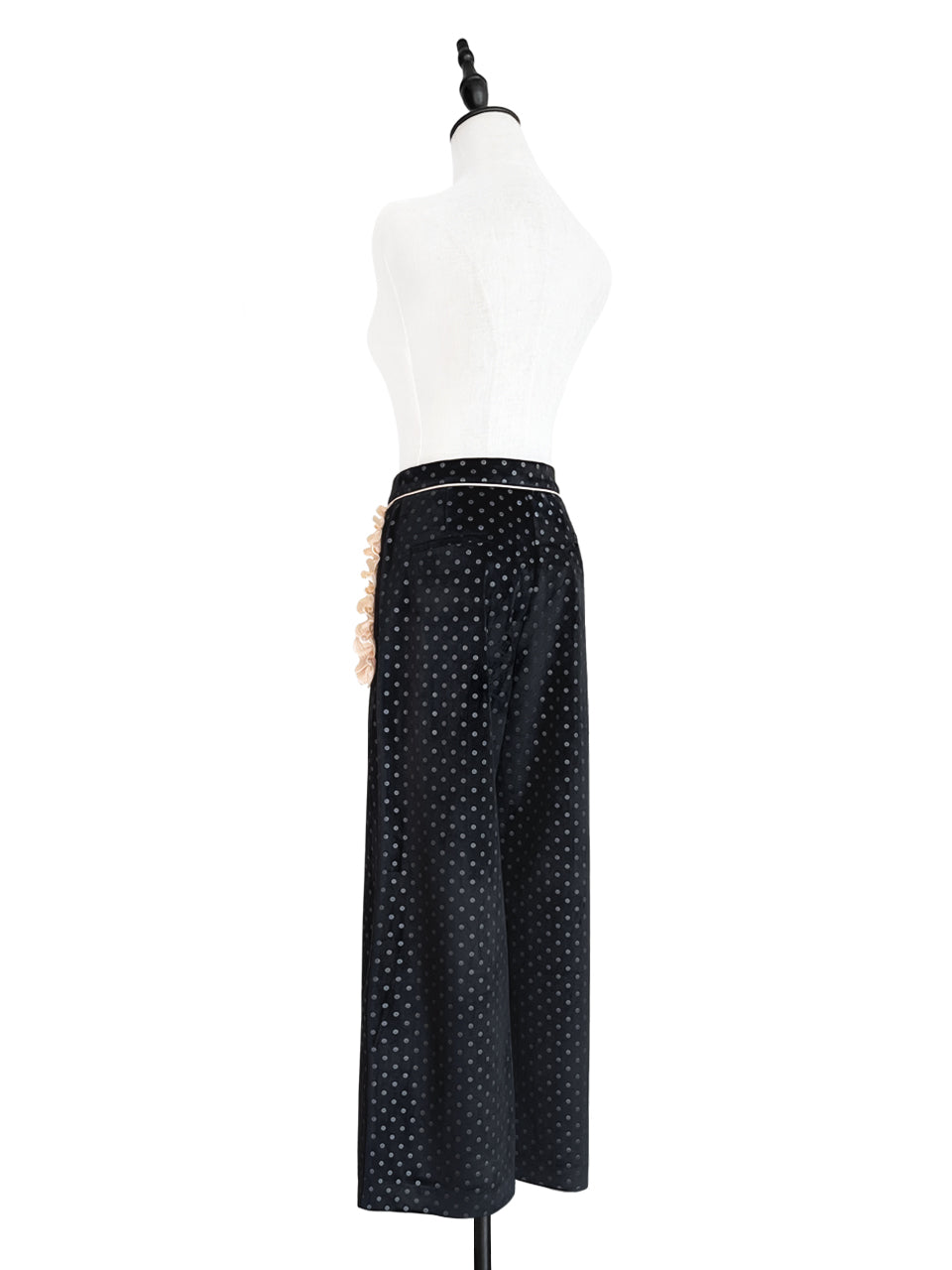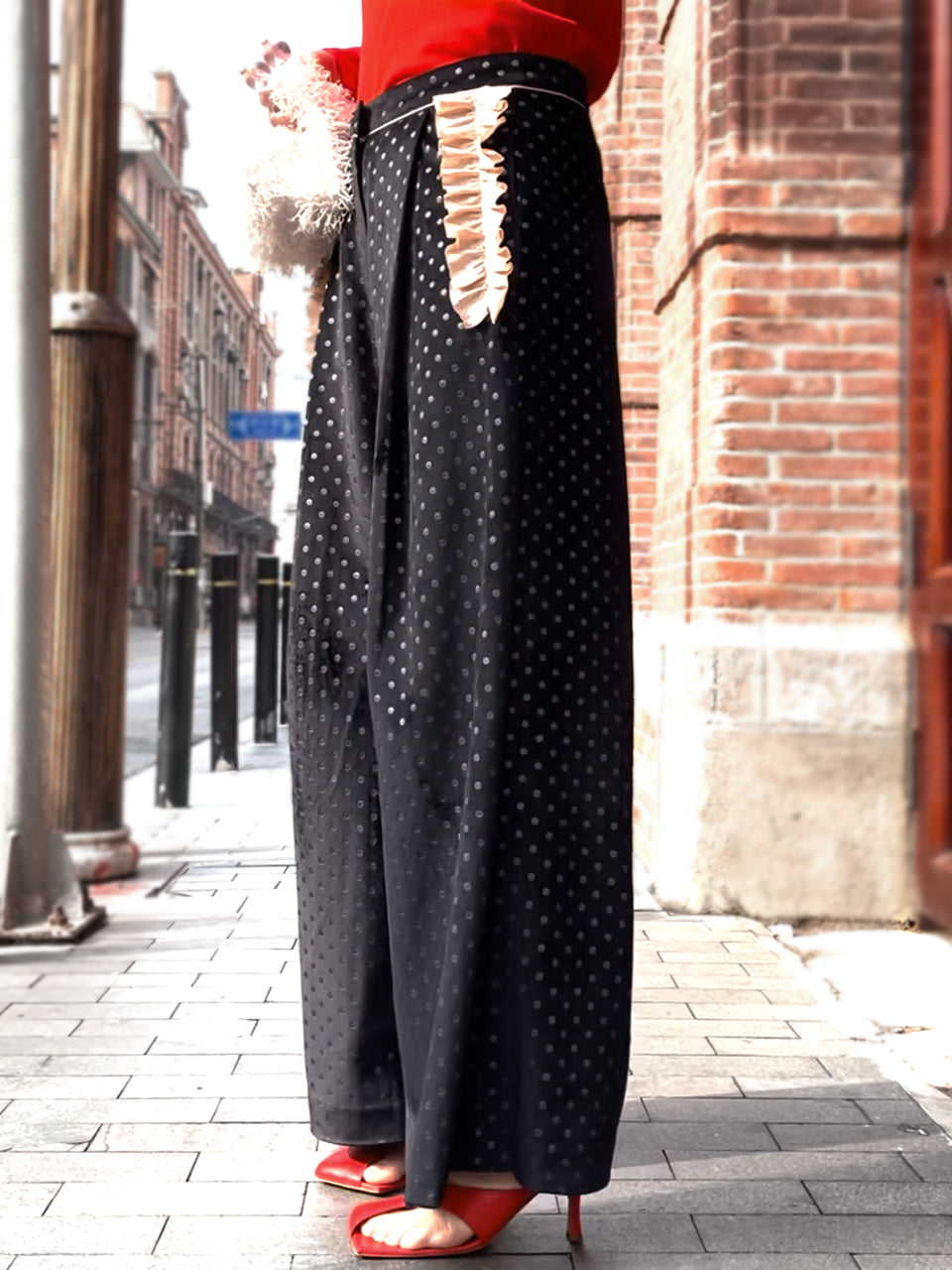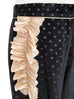 驚喜促銷!黑色圓點荷葉邊口袋寬腿天鵝絨長褲