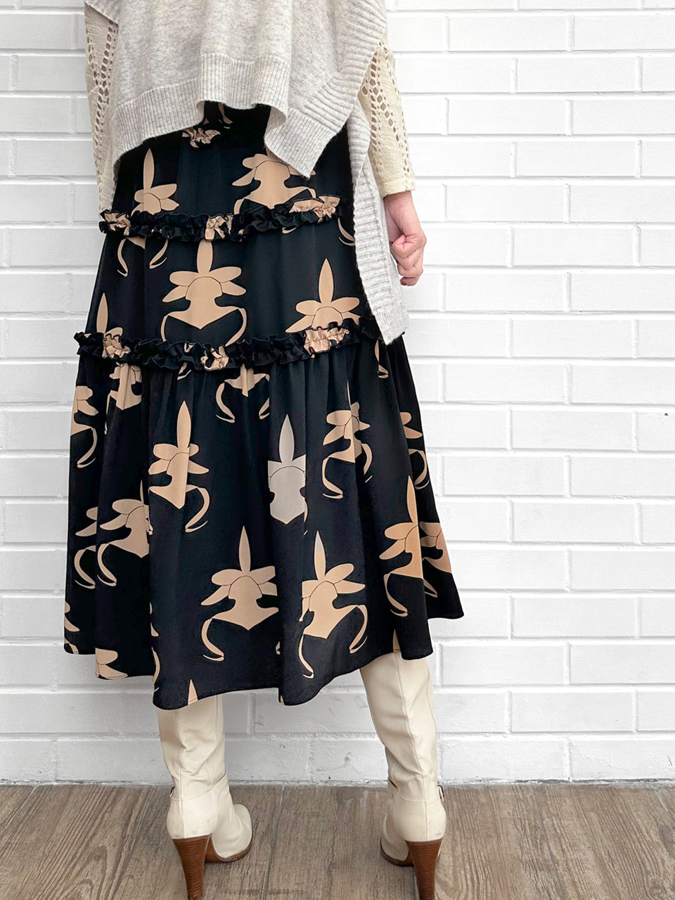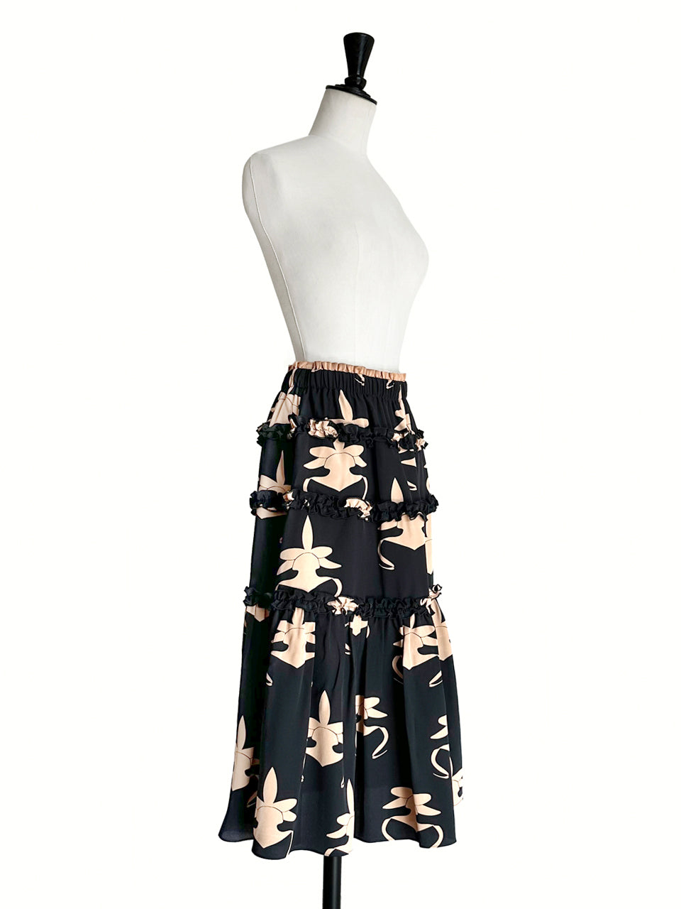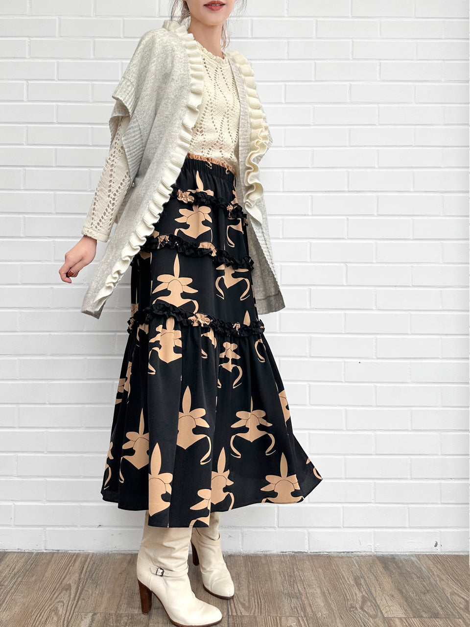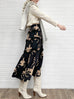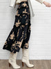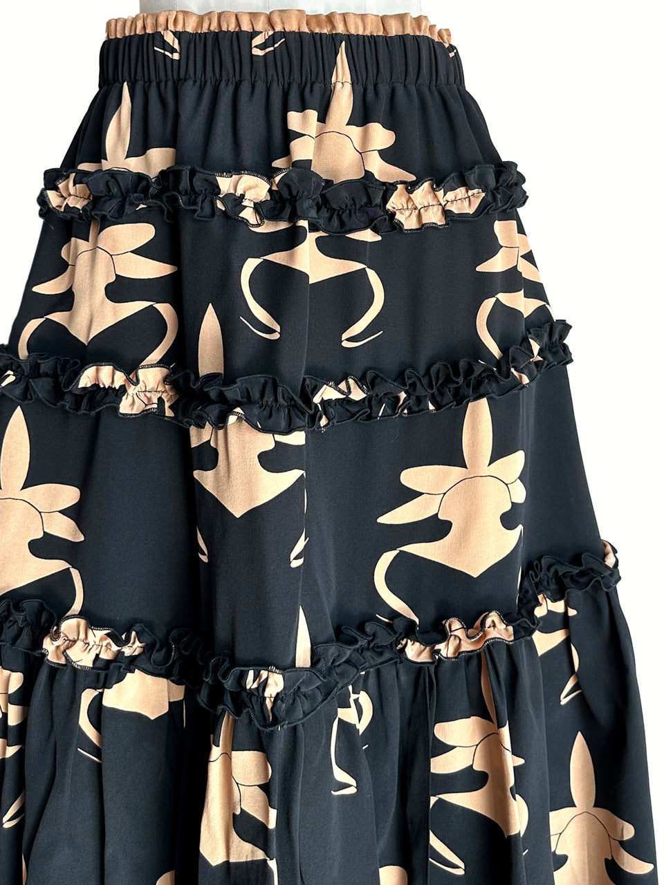 蘭花印花荷葉邊分層雪紡絲質長裙