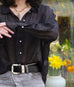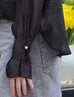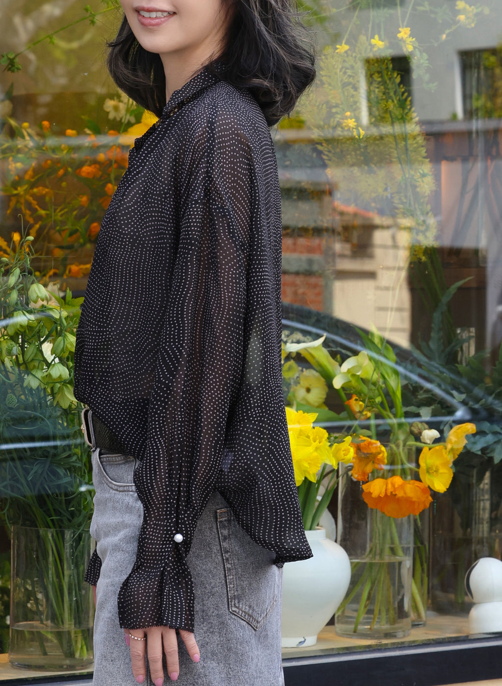Black/Pink Dots Pleated Collar Flared Cuff Silky Blouse