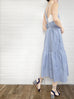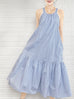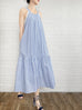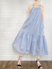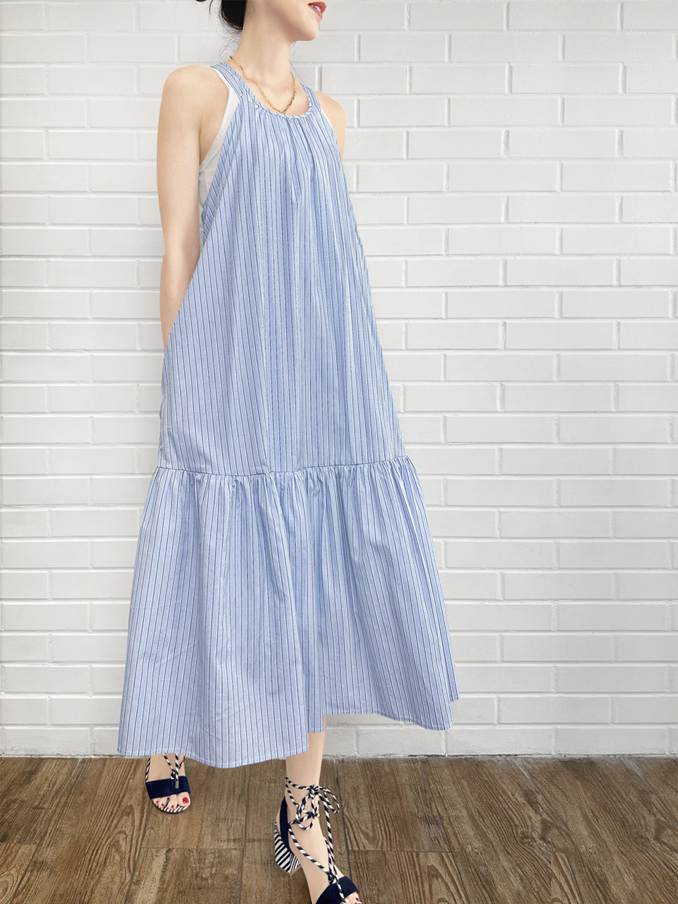 驚喜促銷!藍色條紋棉質掛脖交叉背長洋裝