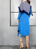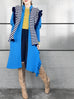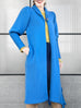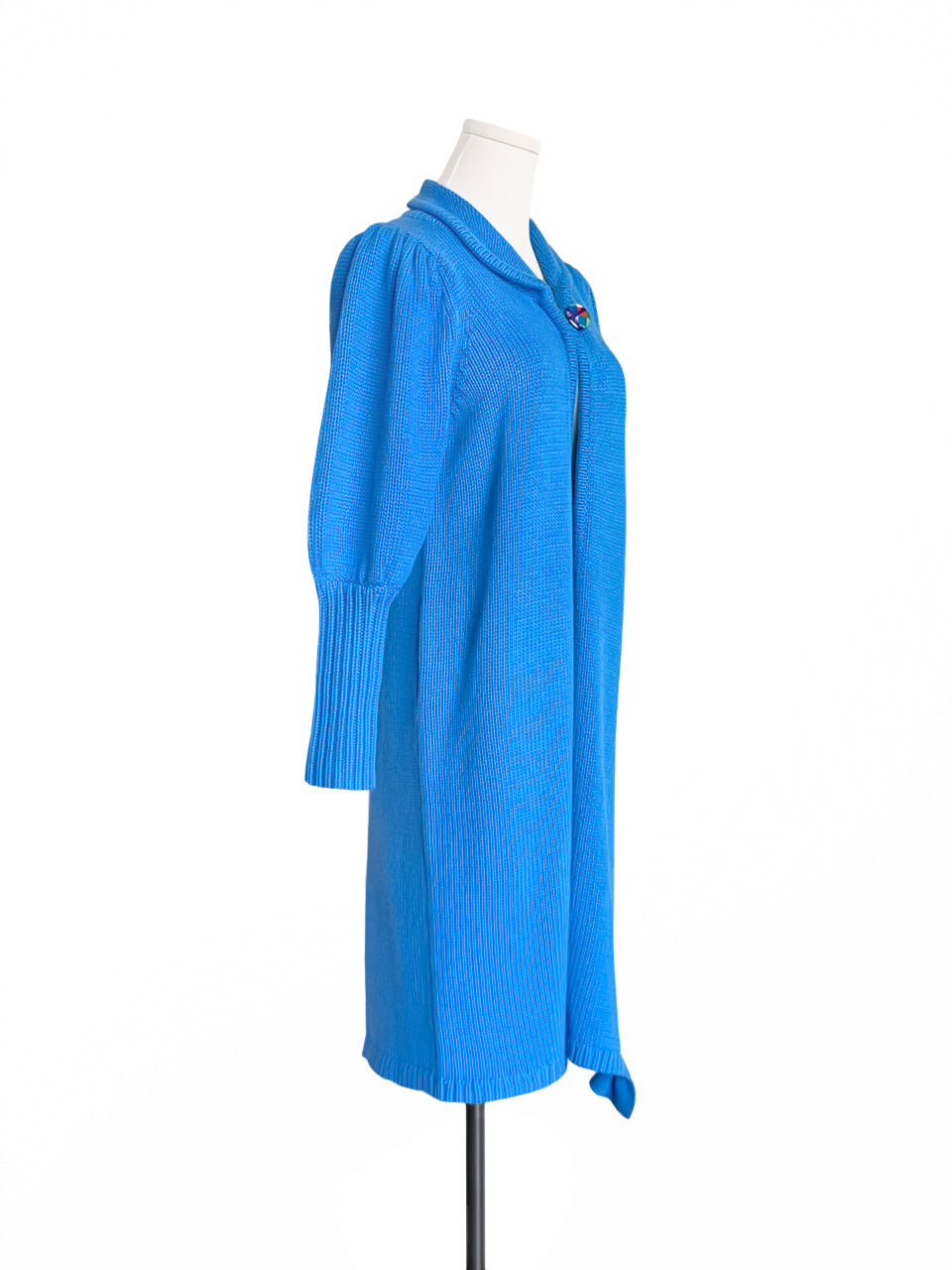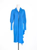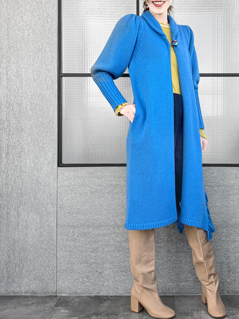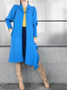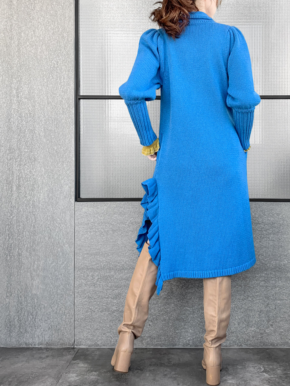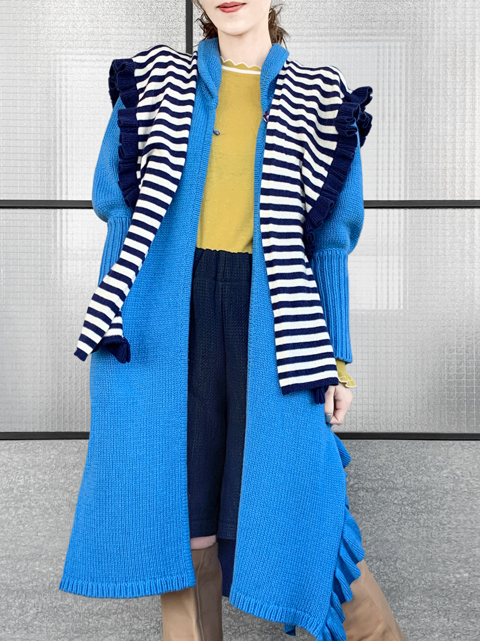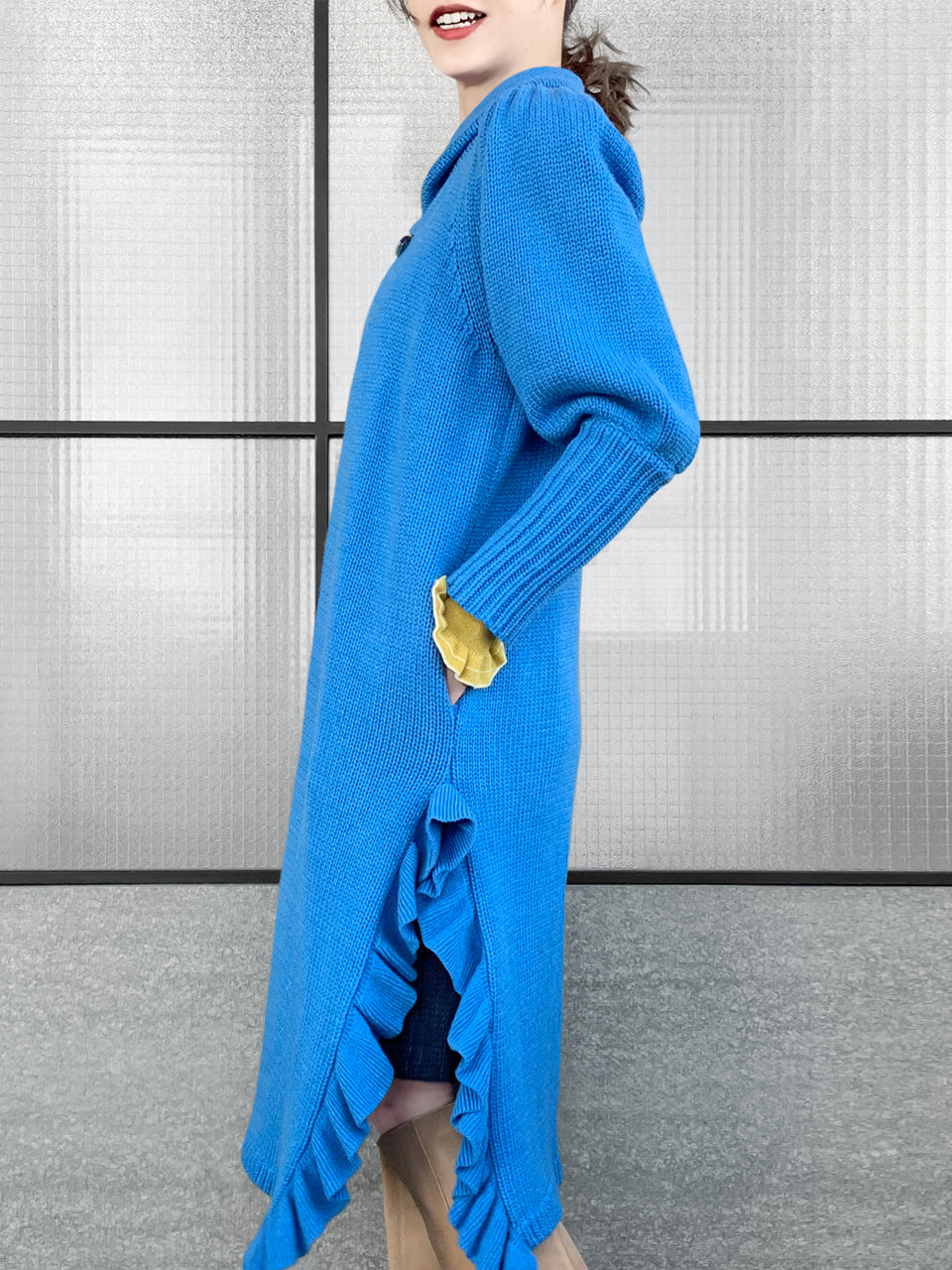 驚喜促銷!藍色羊毛和羊絨荷葉邊開衩長版開襟衫