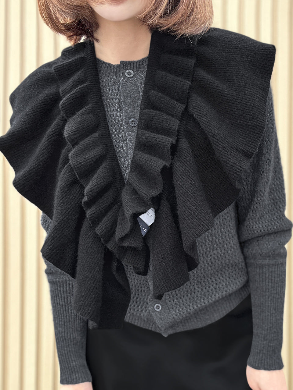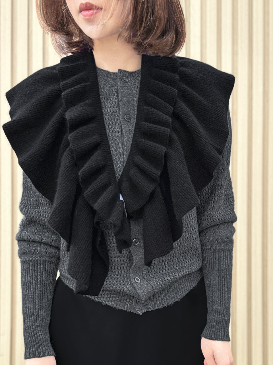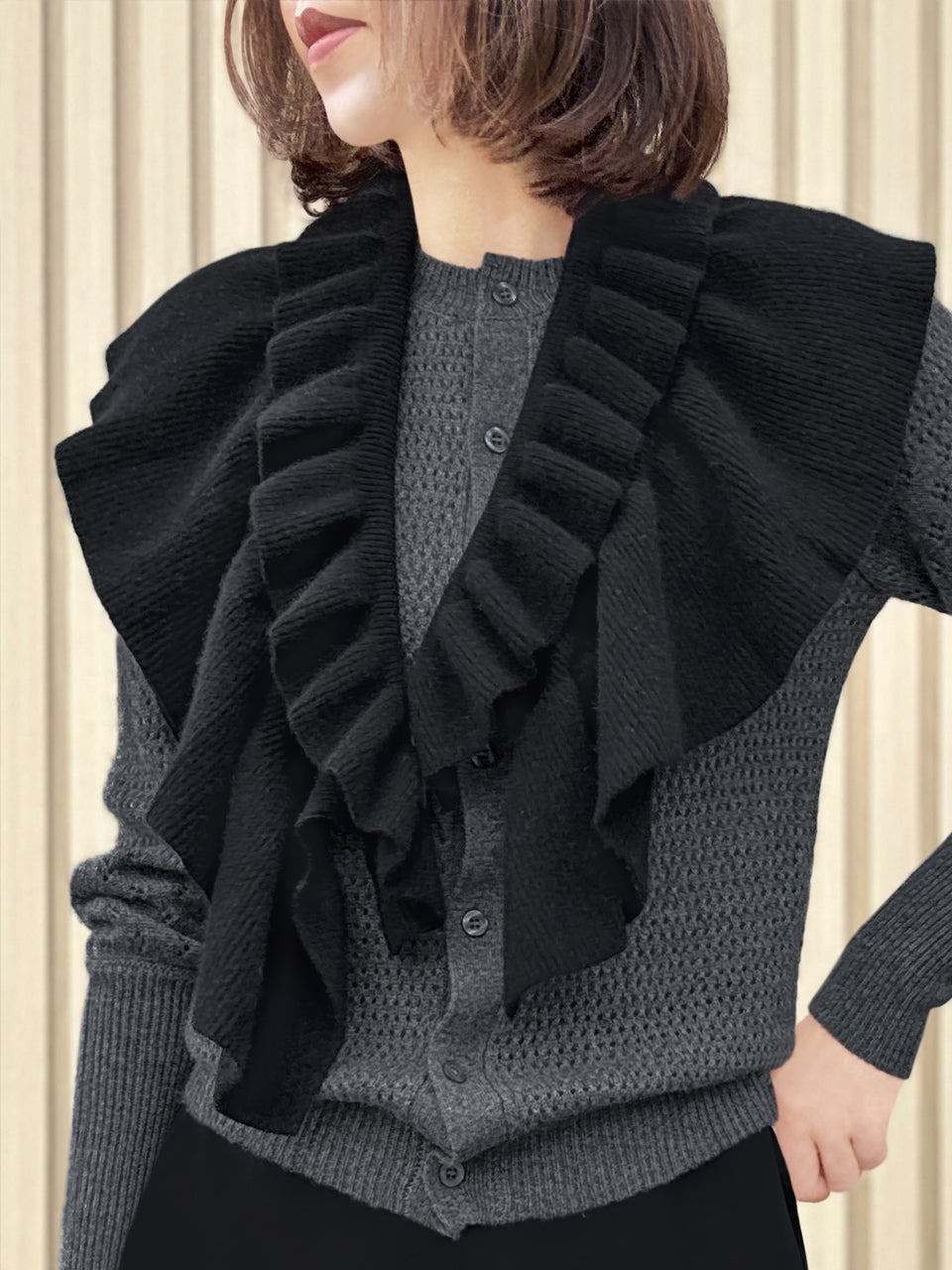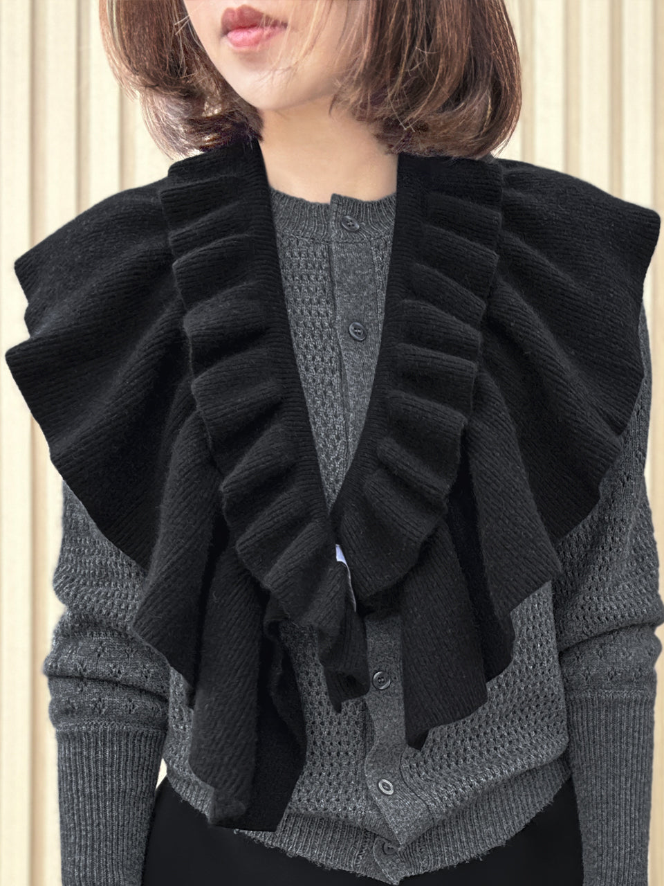 Classic Black Luxe Cashmere Ruffle Collar Wrap