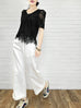 我們最初的荷葉邊蕾絲襯衫非常受歡迎,我們用同樣的面料重新推出了她,但顏色是奶油色和黑色。同樣的剪裁形狀,採用更新的褶皺領子、泡泡短袖,當然還有同色系標誌性高/低褶邊睫毛蕾絲下擺和帶襯裡的身體。