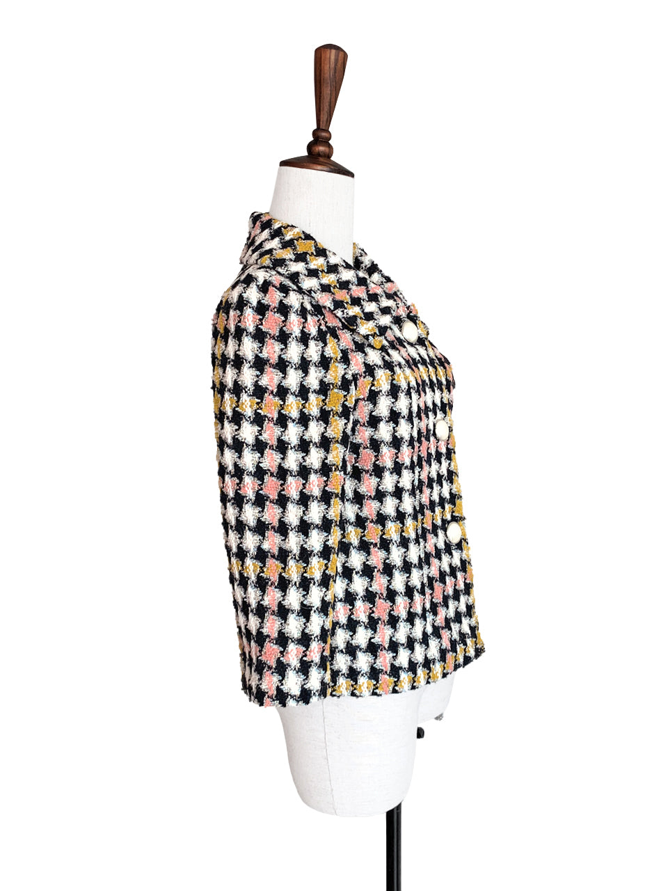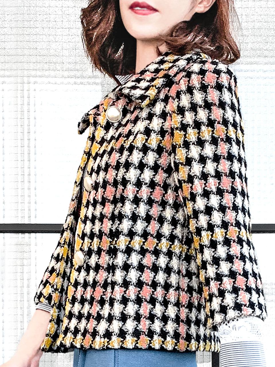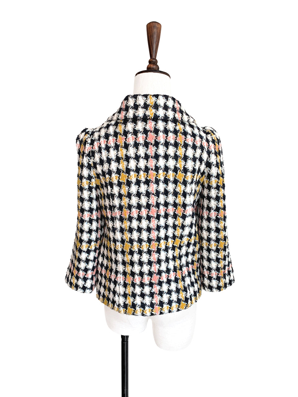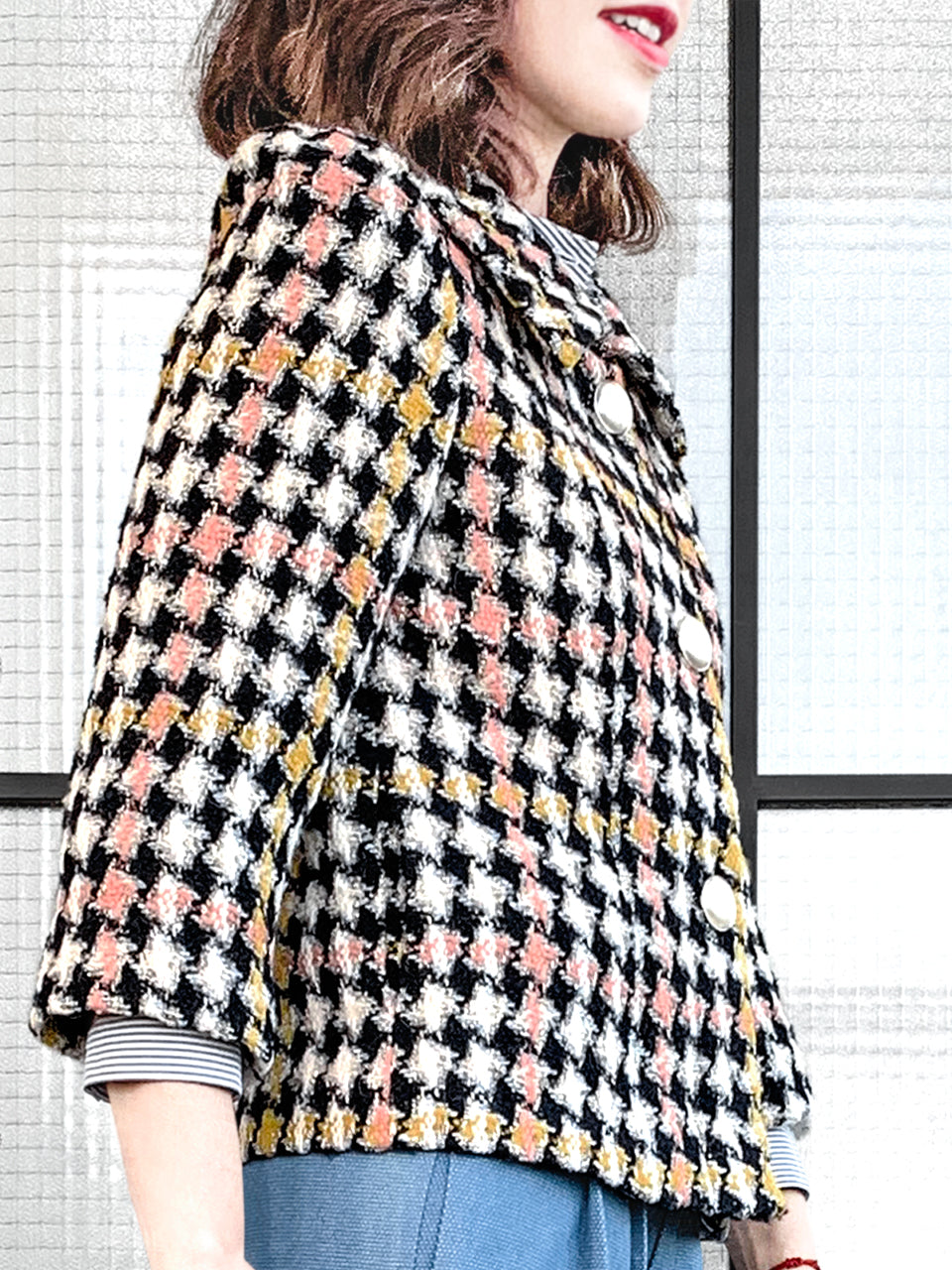 這款色彩繽紛的千鳥格夾克採用拋光珍珠圓頂紐扣設計,既復古又軍裝