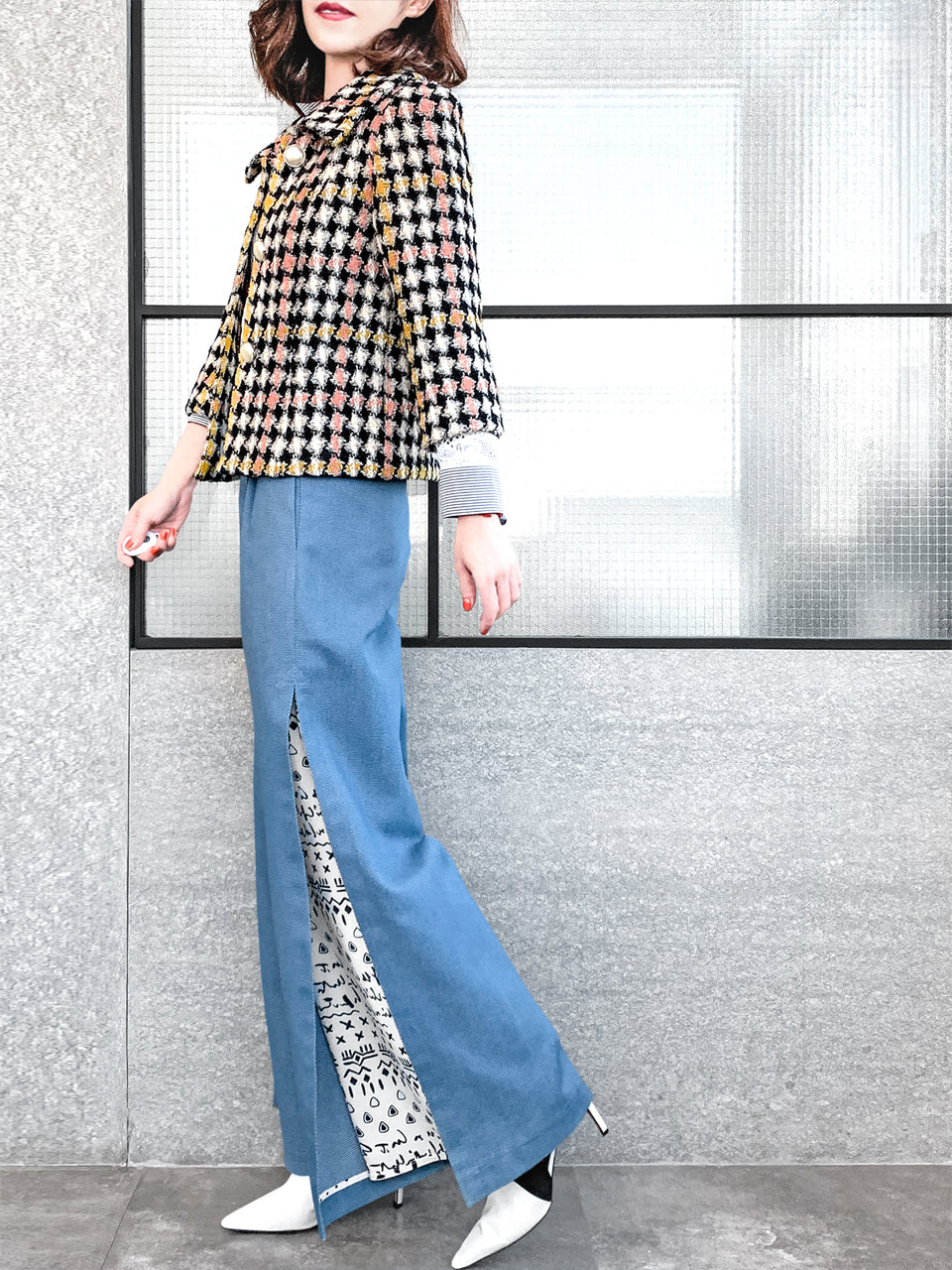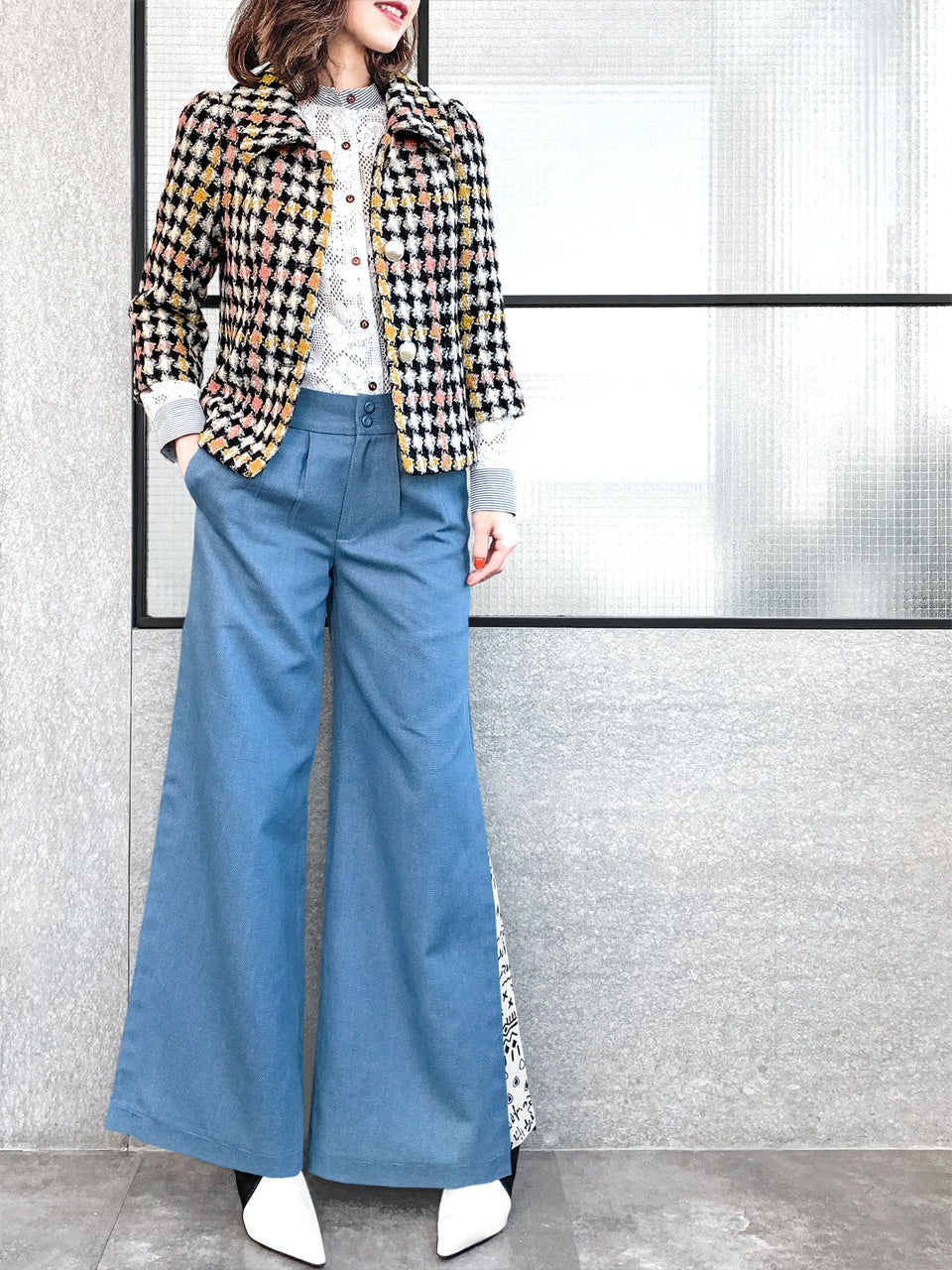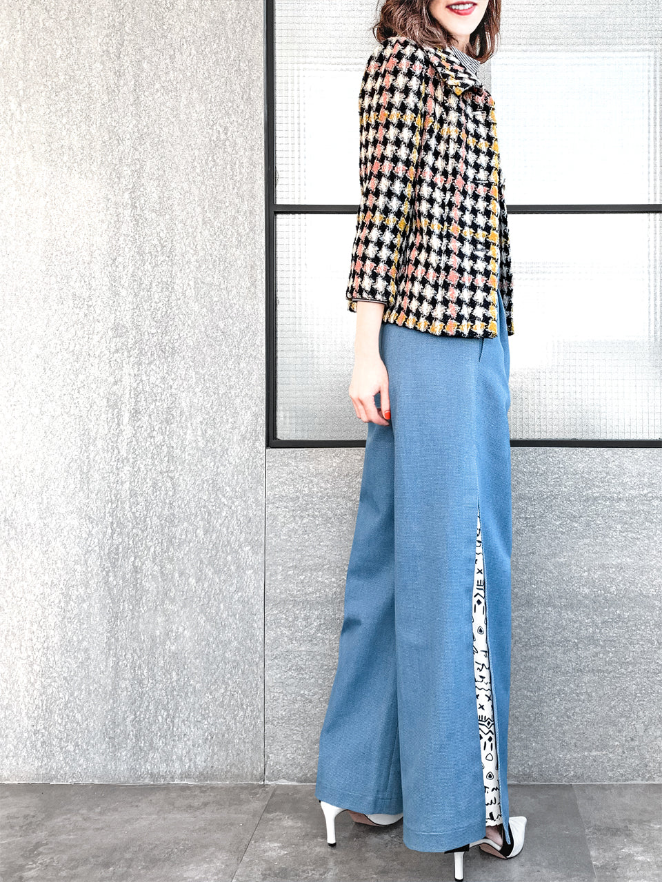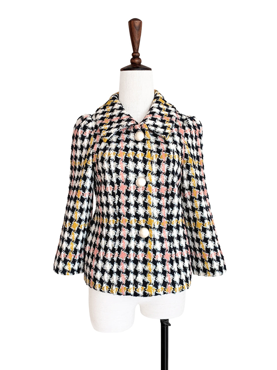 這款色彩繽紛的千鳥格夾克採用拋光珍珠圓頂紐扣設計,既復古又軍裝
