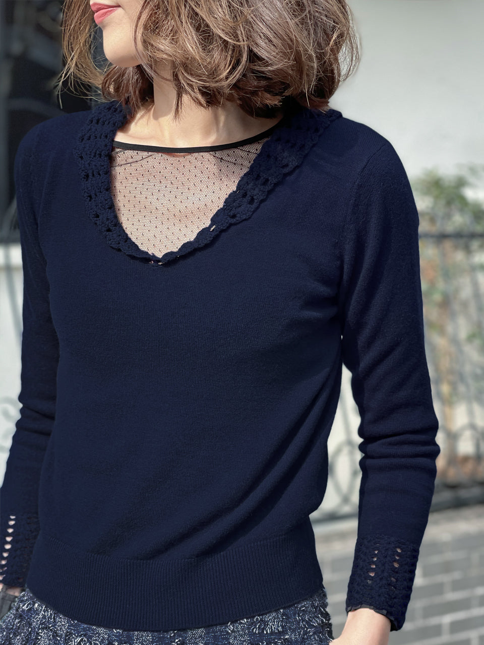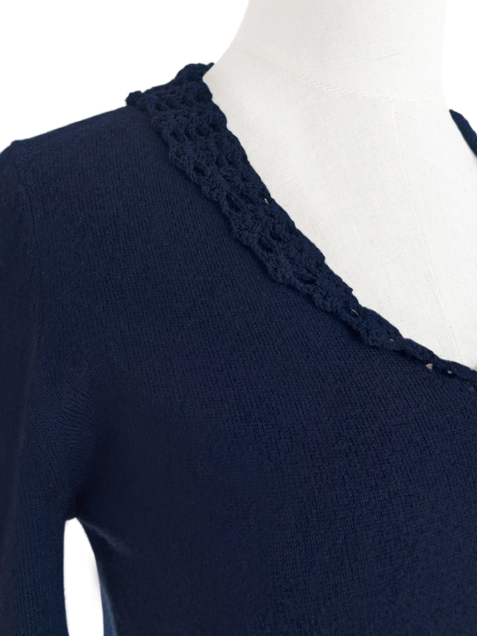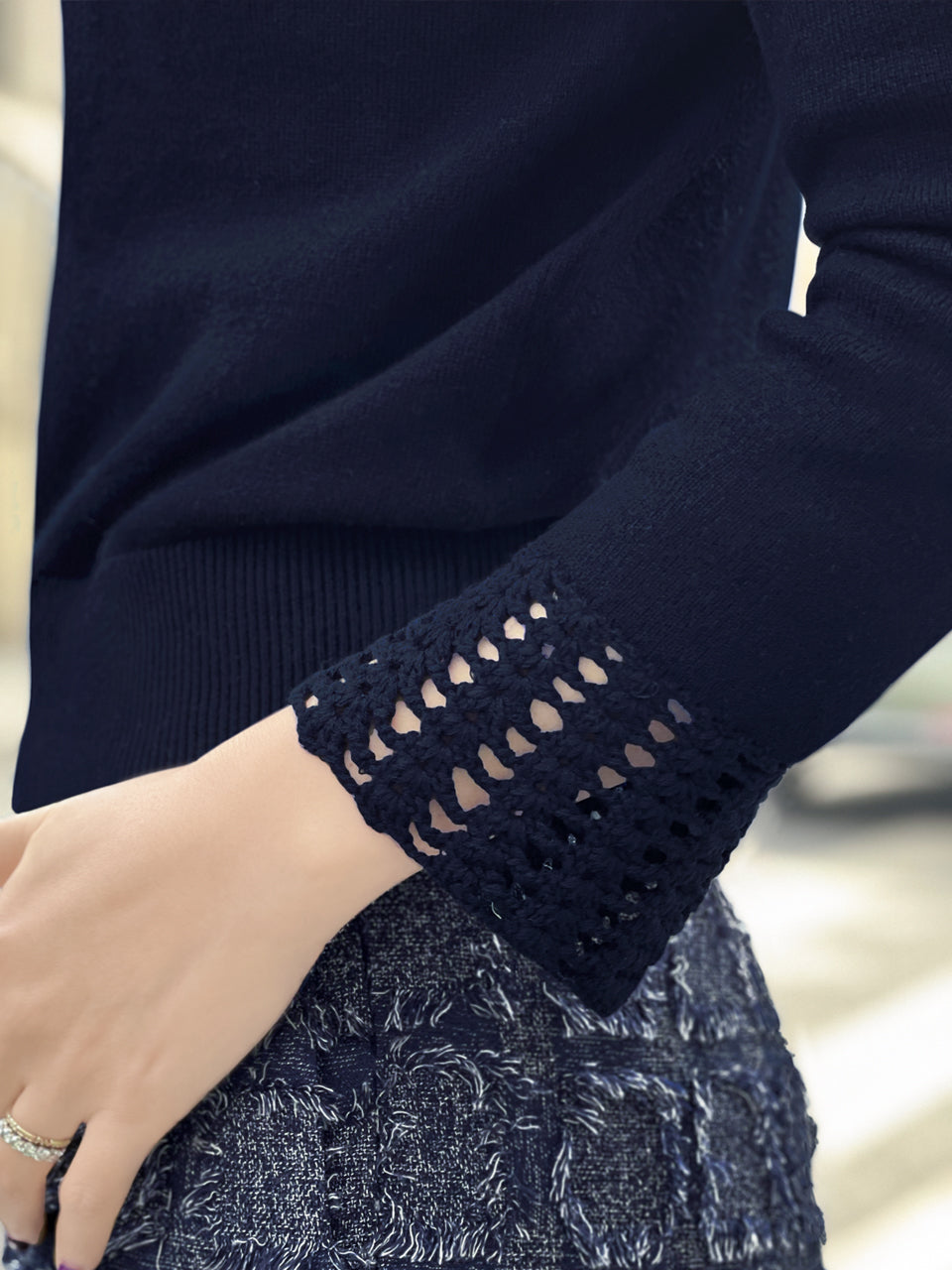 驚喜促銷!鉤編細節羊絨羊毛混紡毛衣