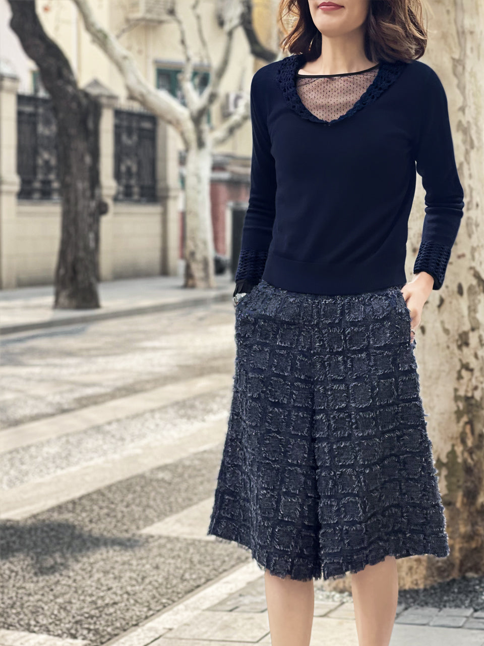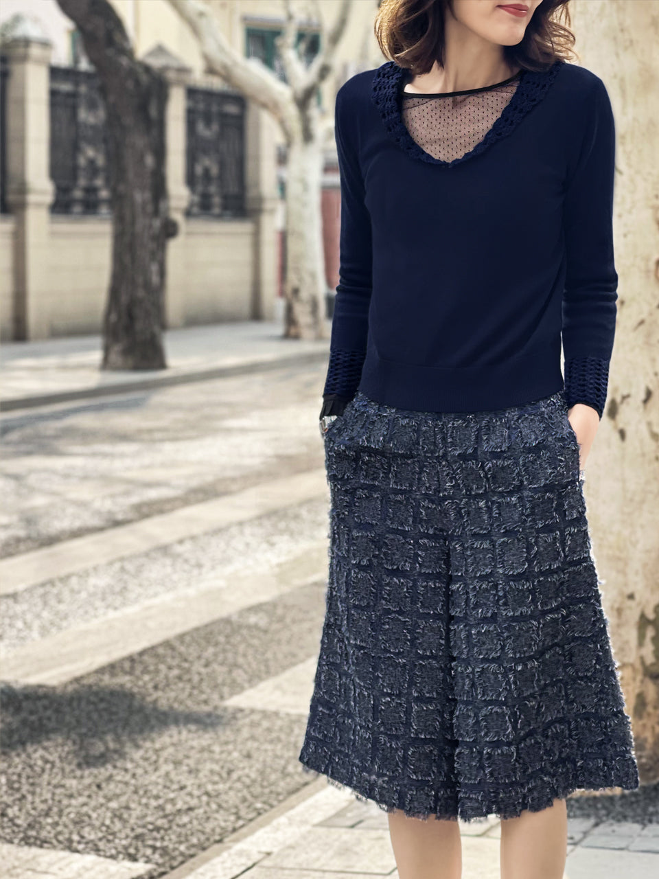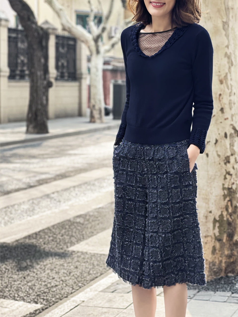 驚喜促銷!鉤編細節羊絨羊毛混紡毛衣