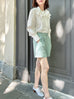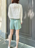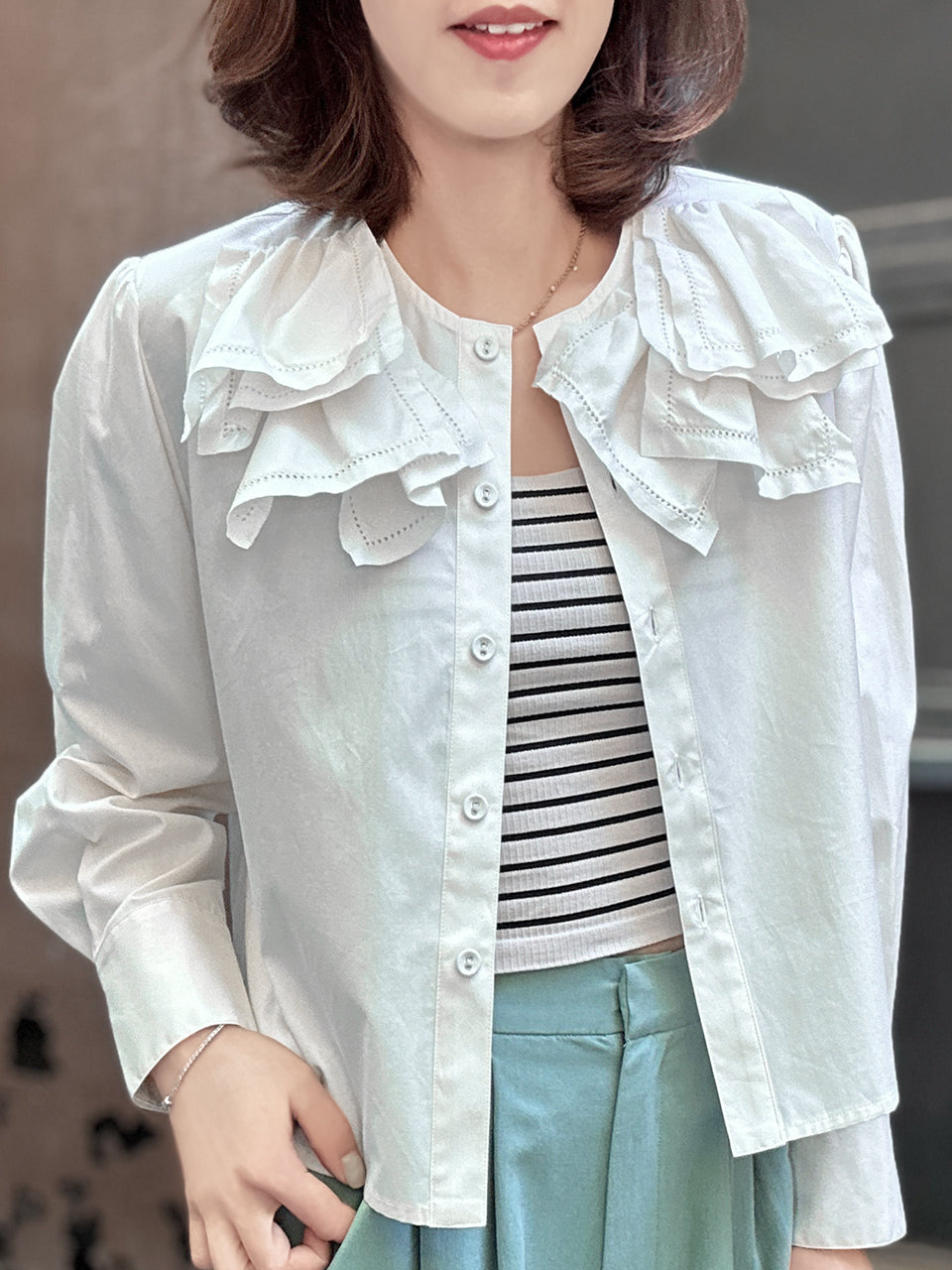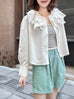 清爽白色刺繡疊領短襯衫