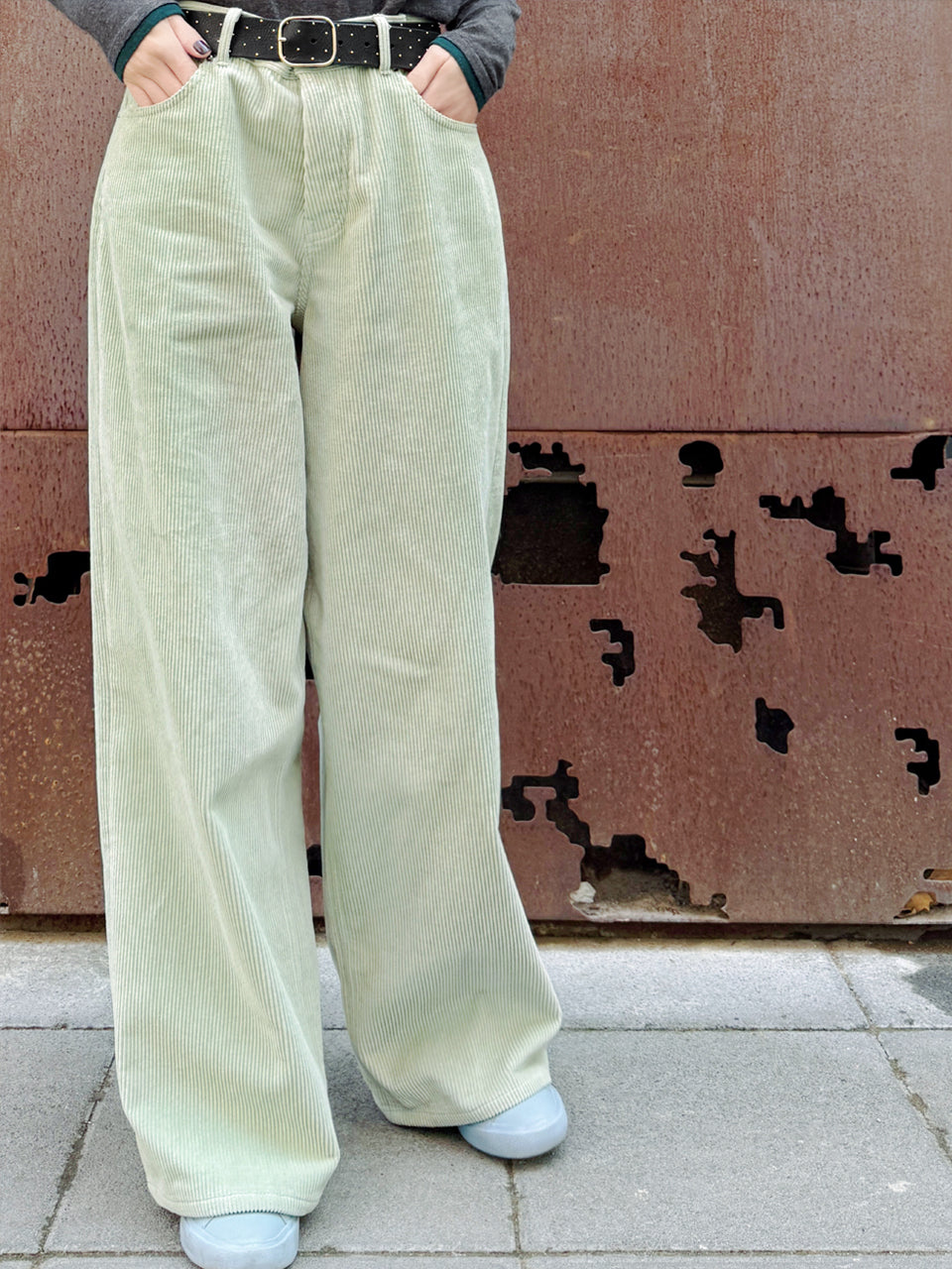 Surprise Sale! Misty Green Cotton Blend Corduroy Wide-Leg Trousers