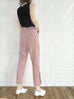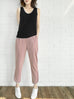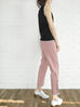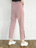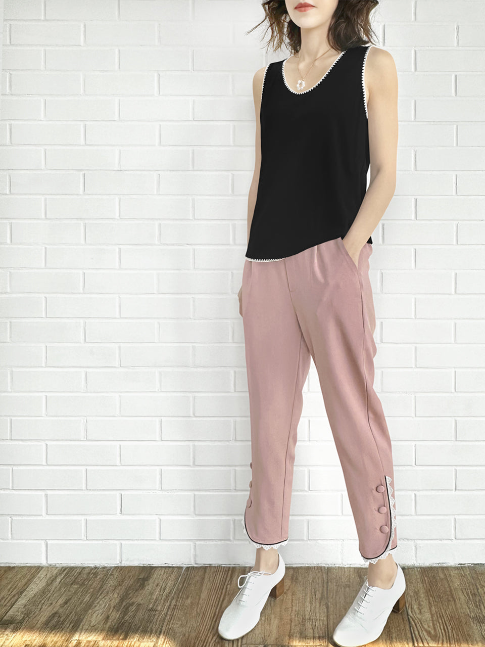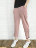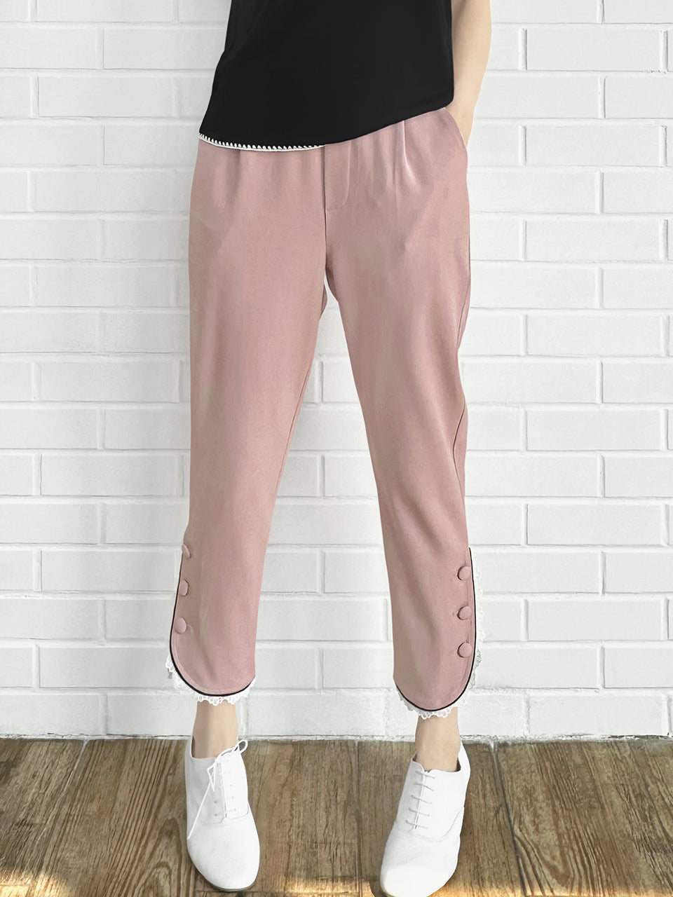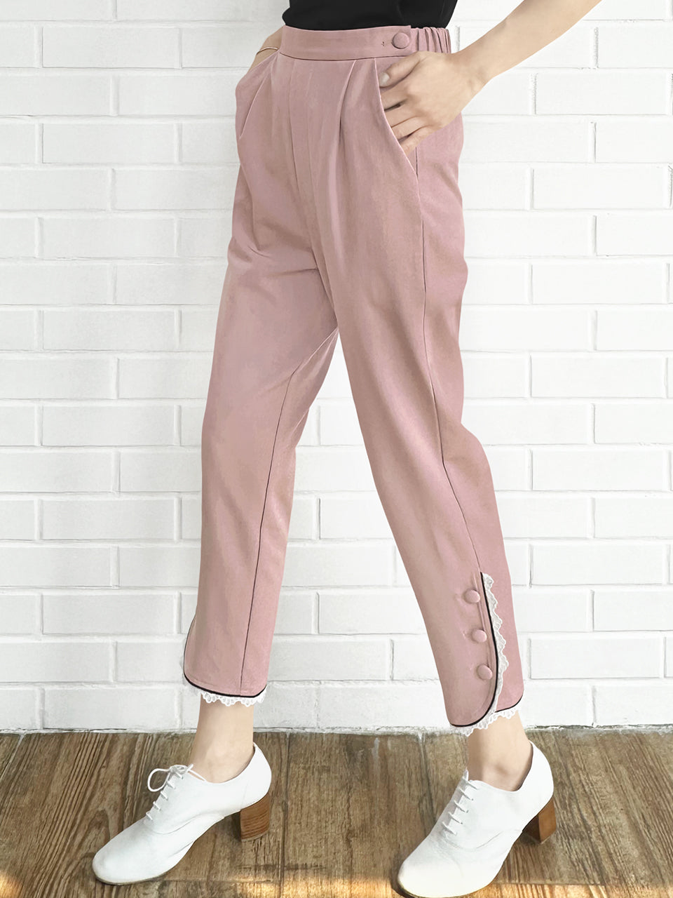 粉紅色撞色滾邊蕾絲細部錐形九分褲