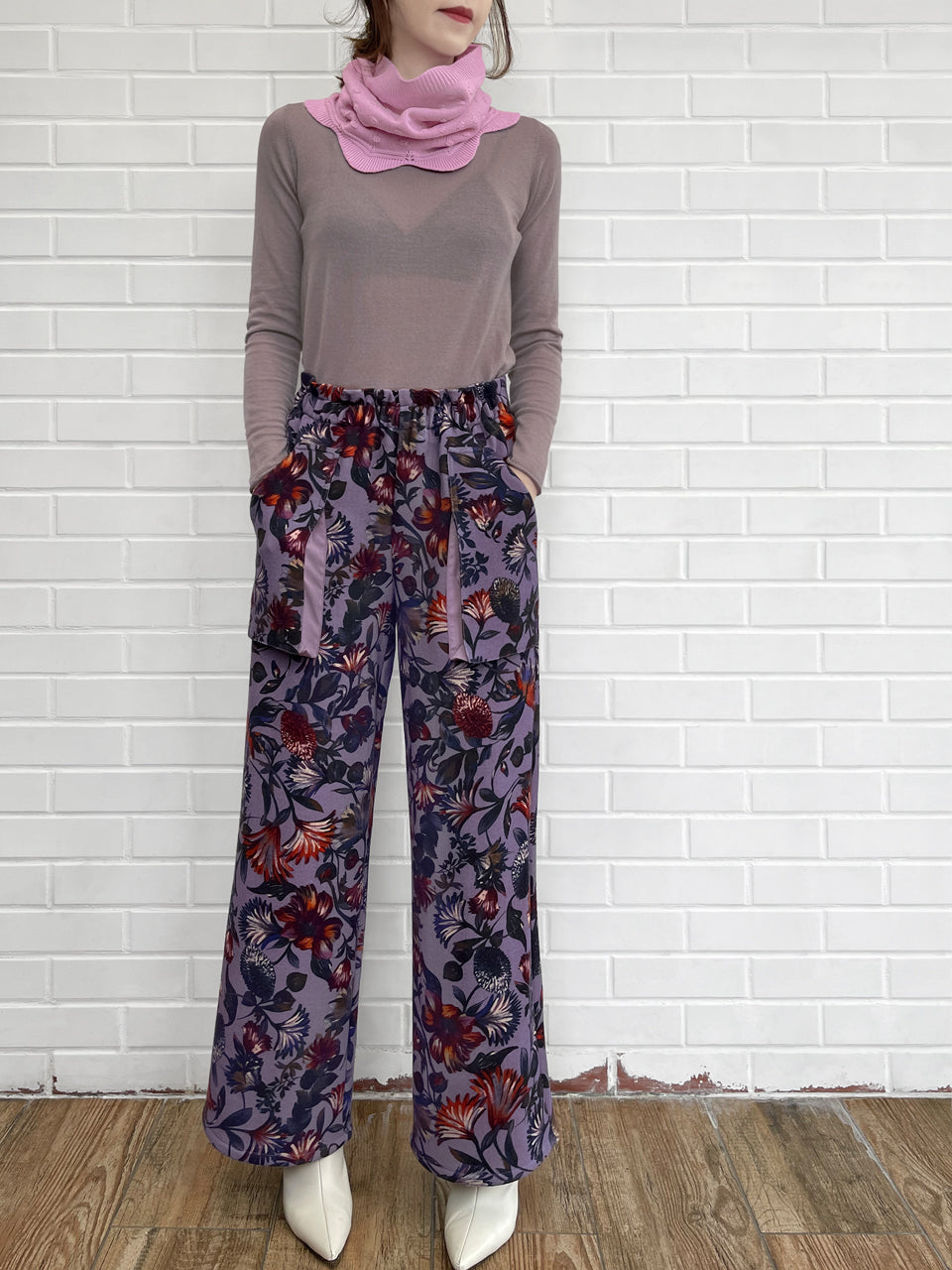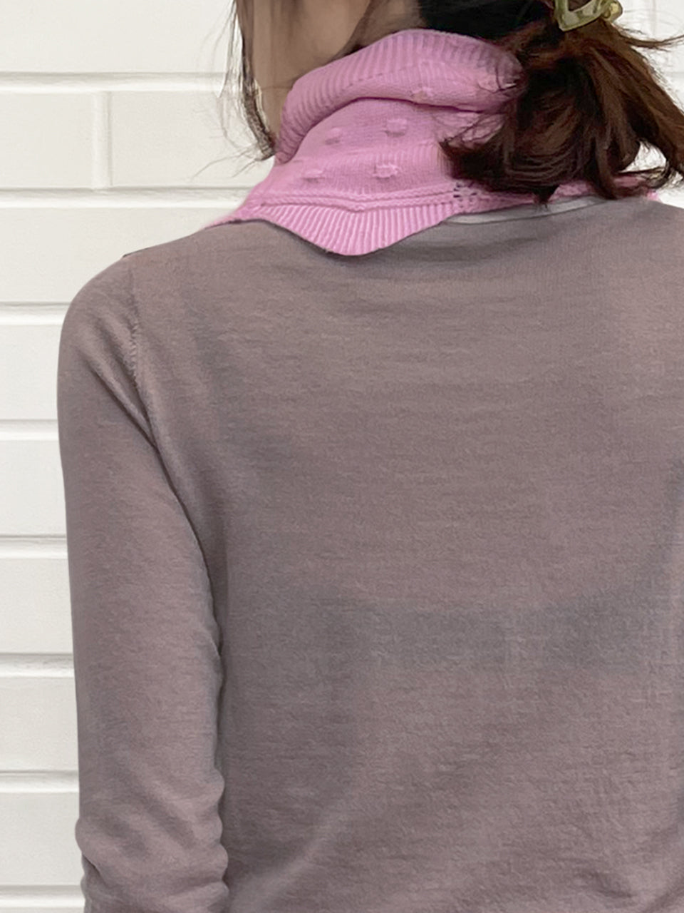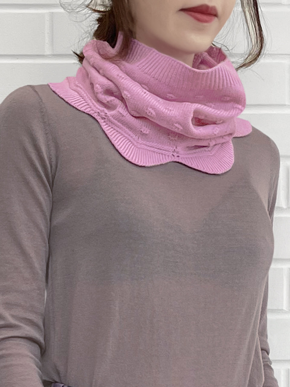 粉紅色爆米花縫製扇形羊絨羊毛混紡圍脖