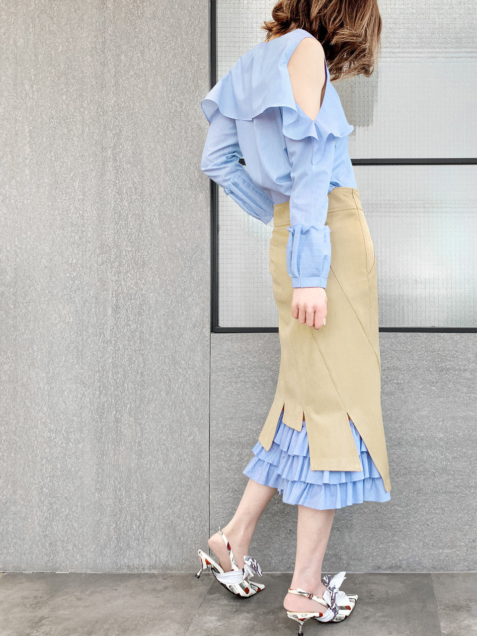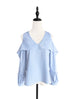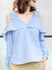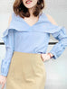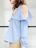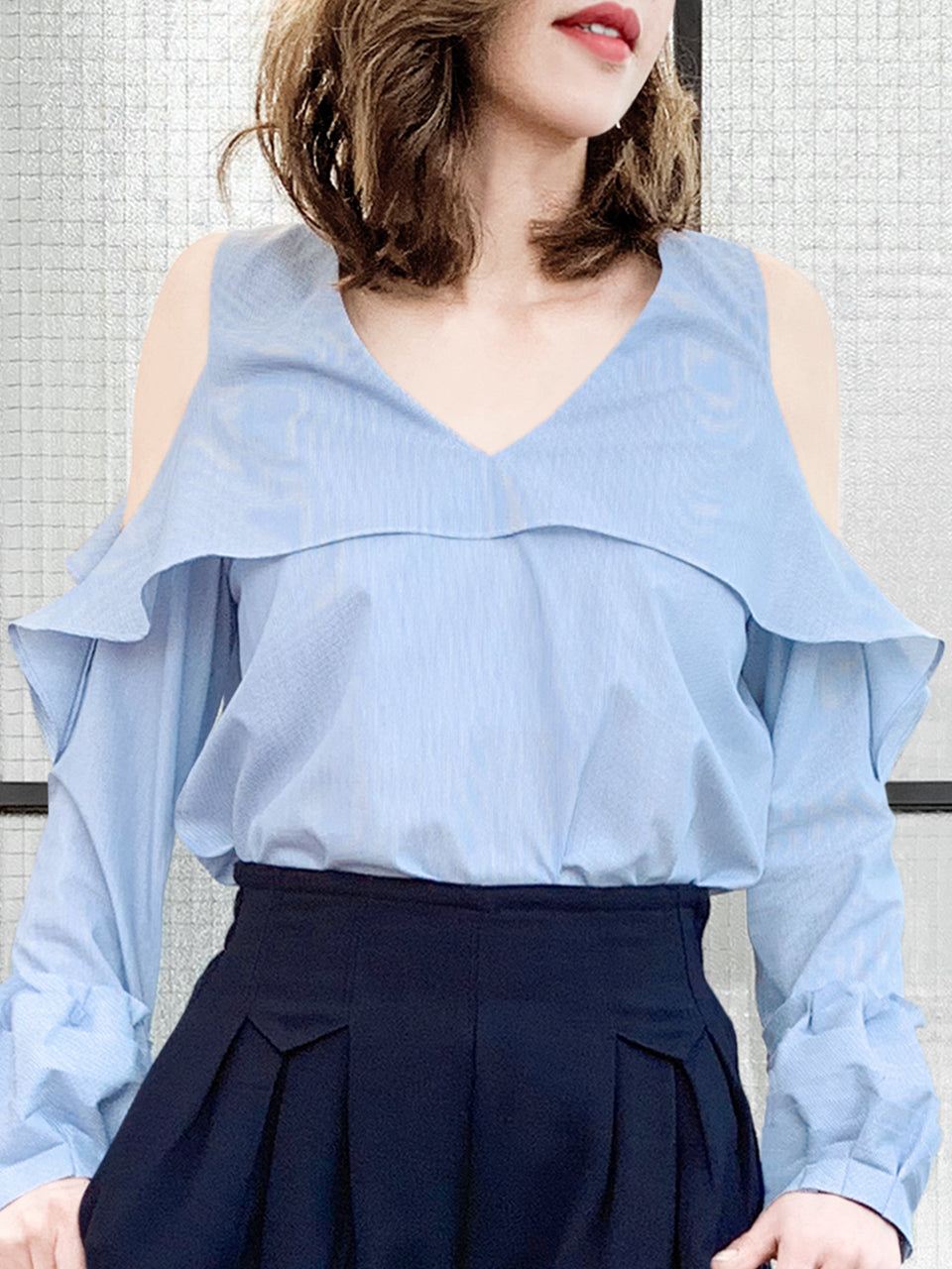 這款飄逸袖子設計的露肩襯衫展現魅力,而浪漫的荷葉邊靈感府綢襯衫則打造休閒造型