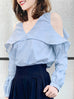 現代細條紋純棉府綢為這款露肩上衣增添亮點,低領口設計,側擺開衩