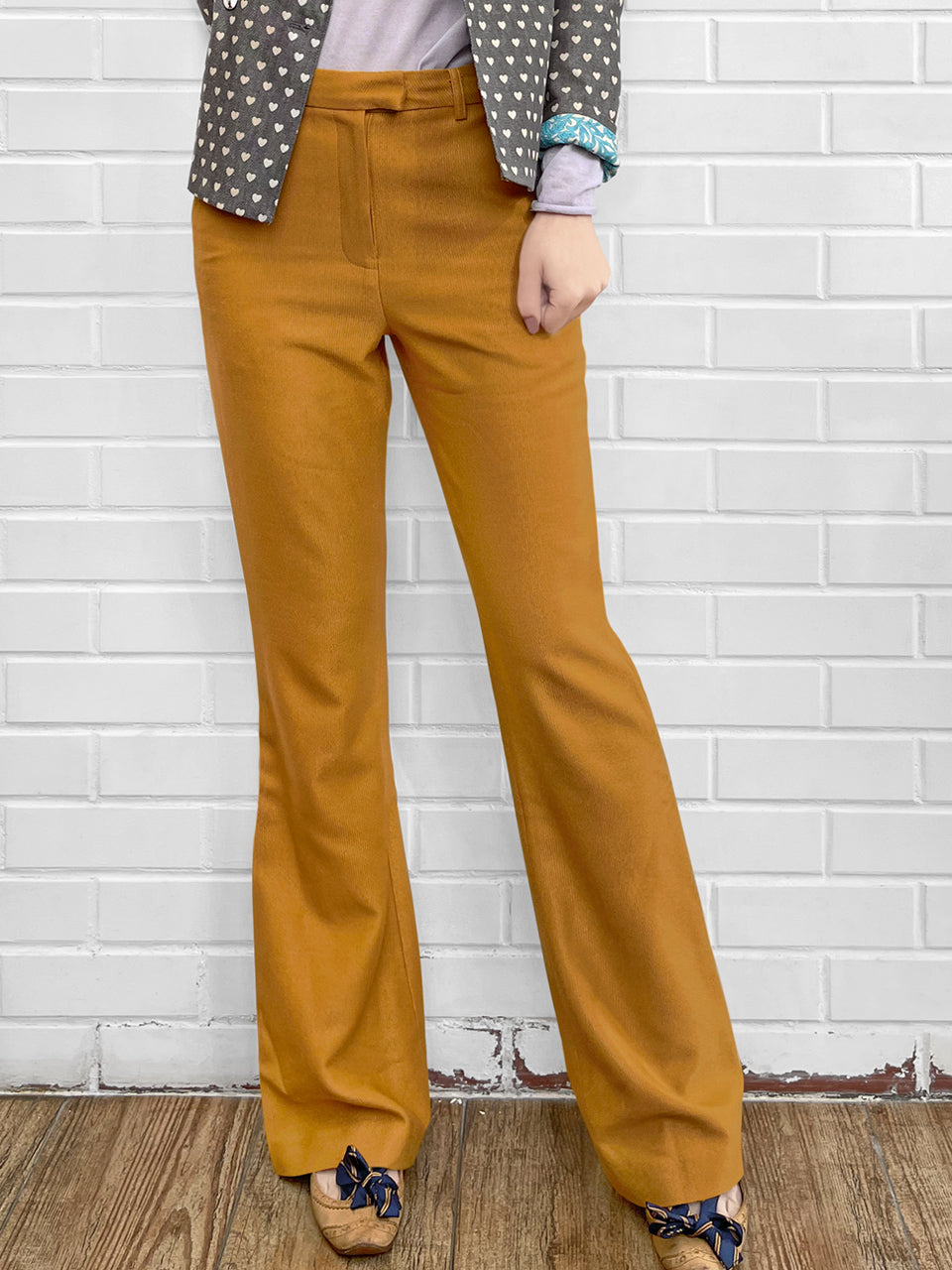 最後的機會! Sparkie 赭石色喇叭褲彈性棉混紡長褲