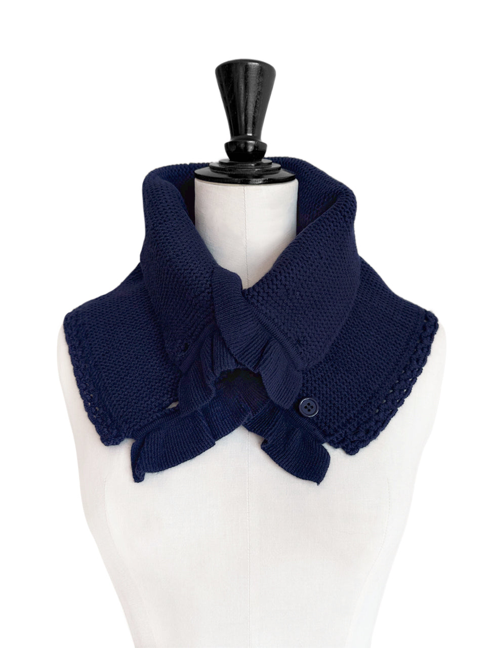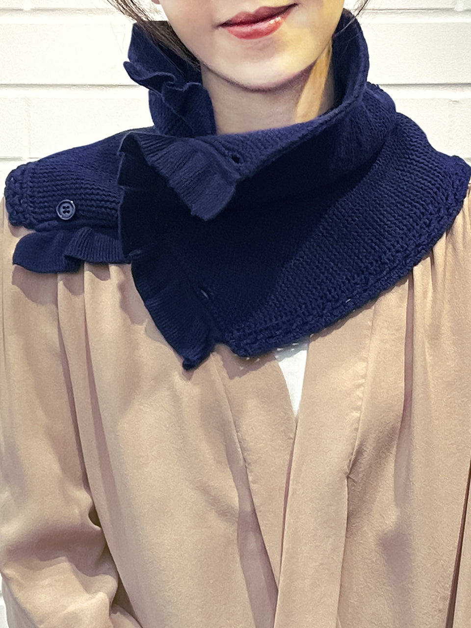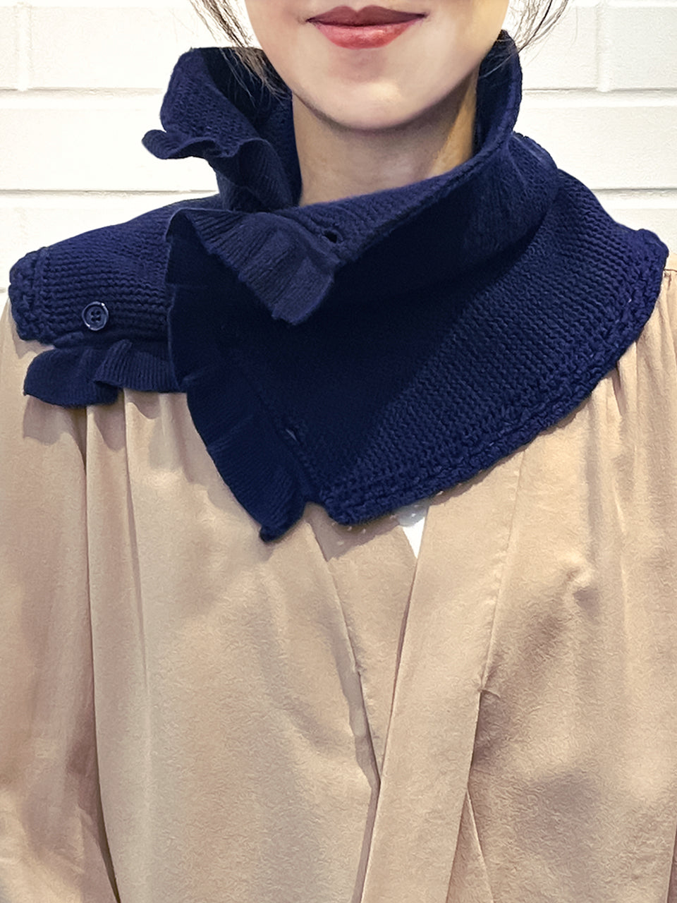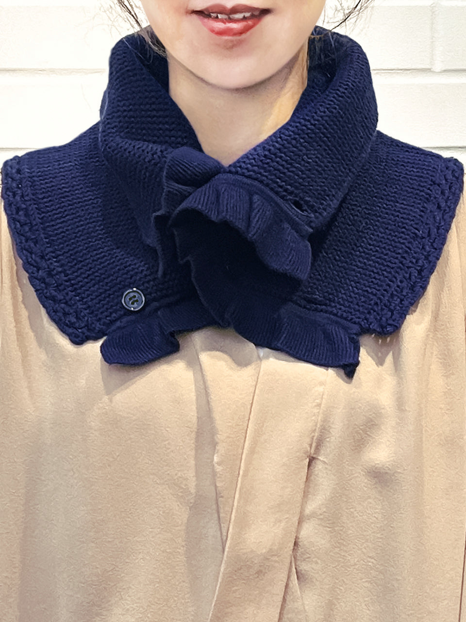 特別的!海軍藍鉤編邊飾荷葉邊 A 型內襯圍脖