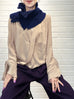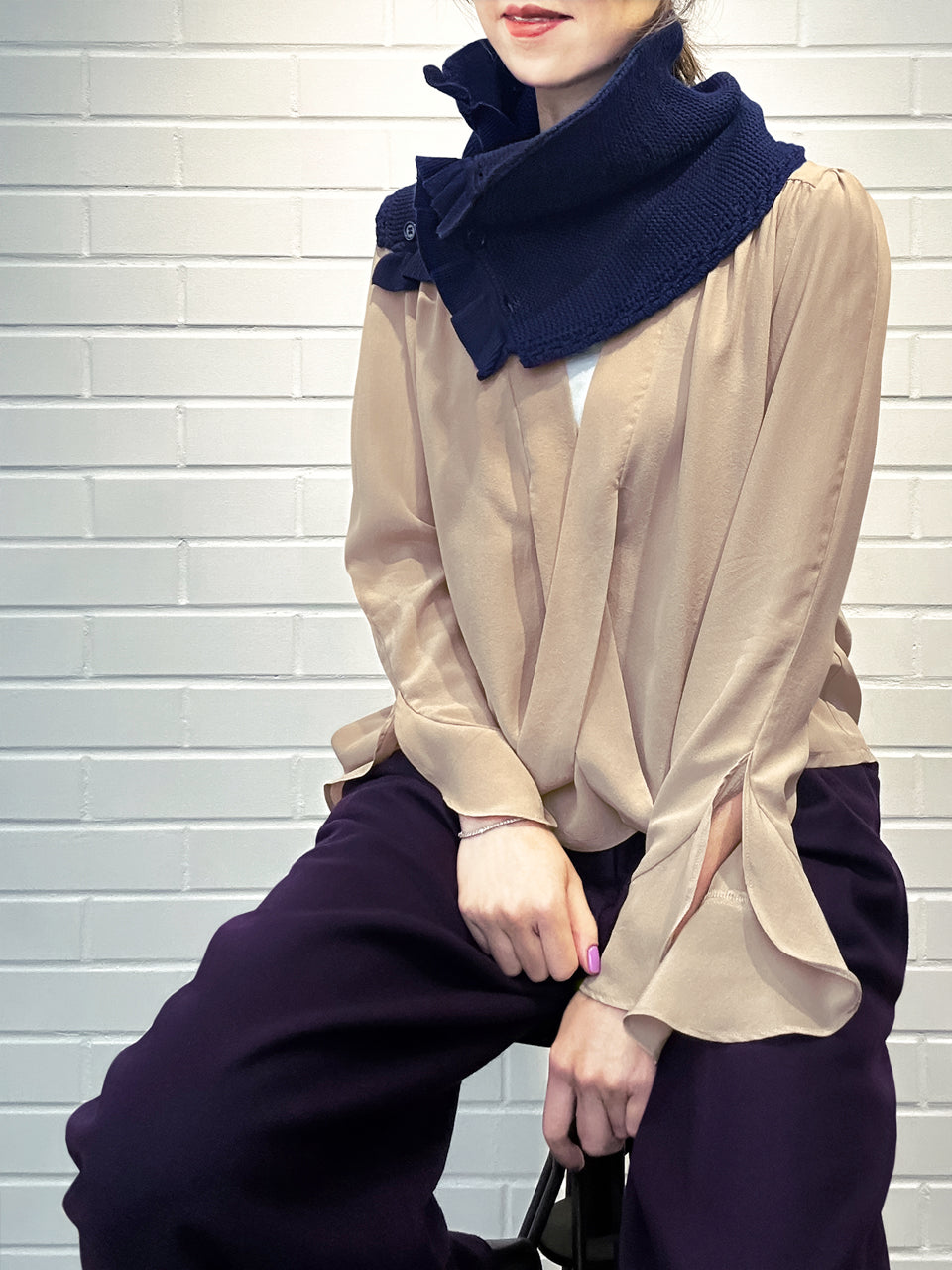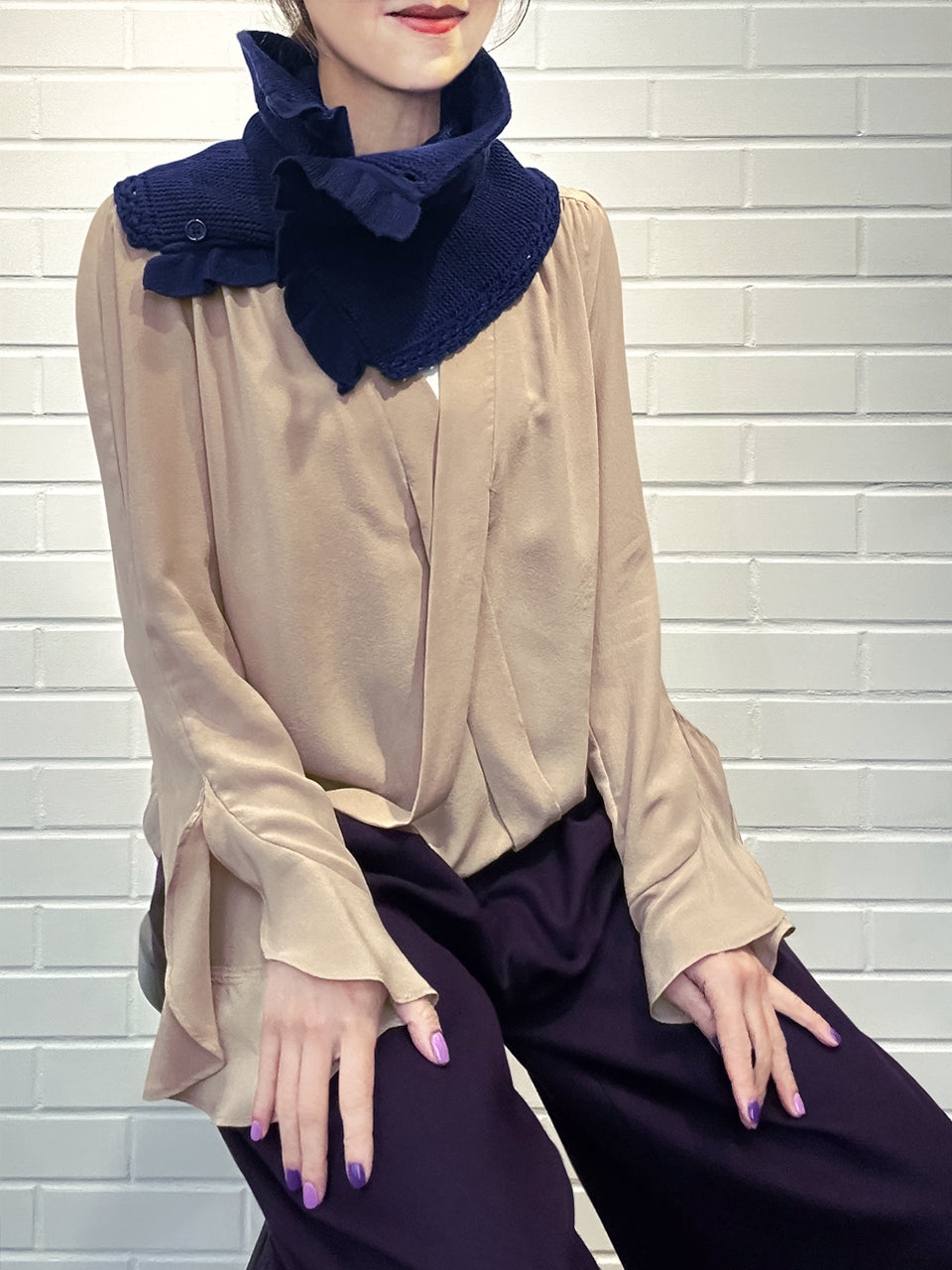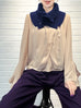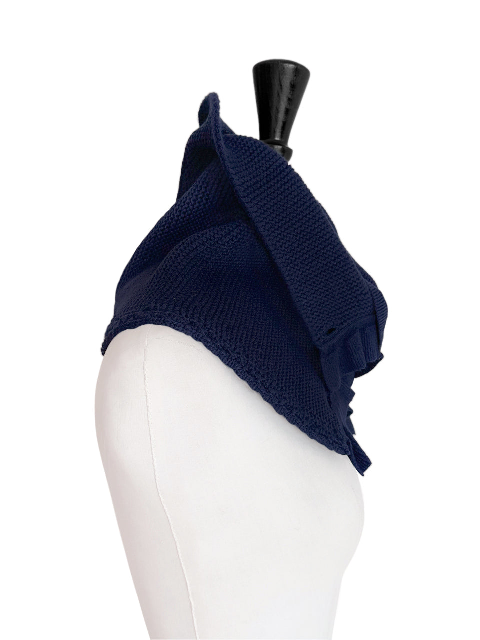 特別的!海軍藍鉤編邊飾荷葉邊 A 型內襯圍脖