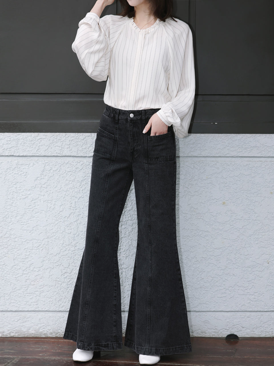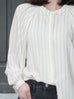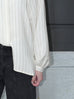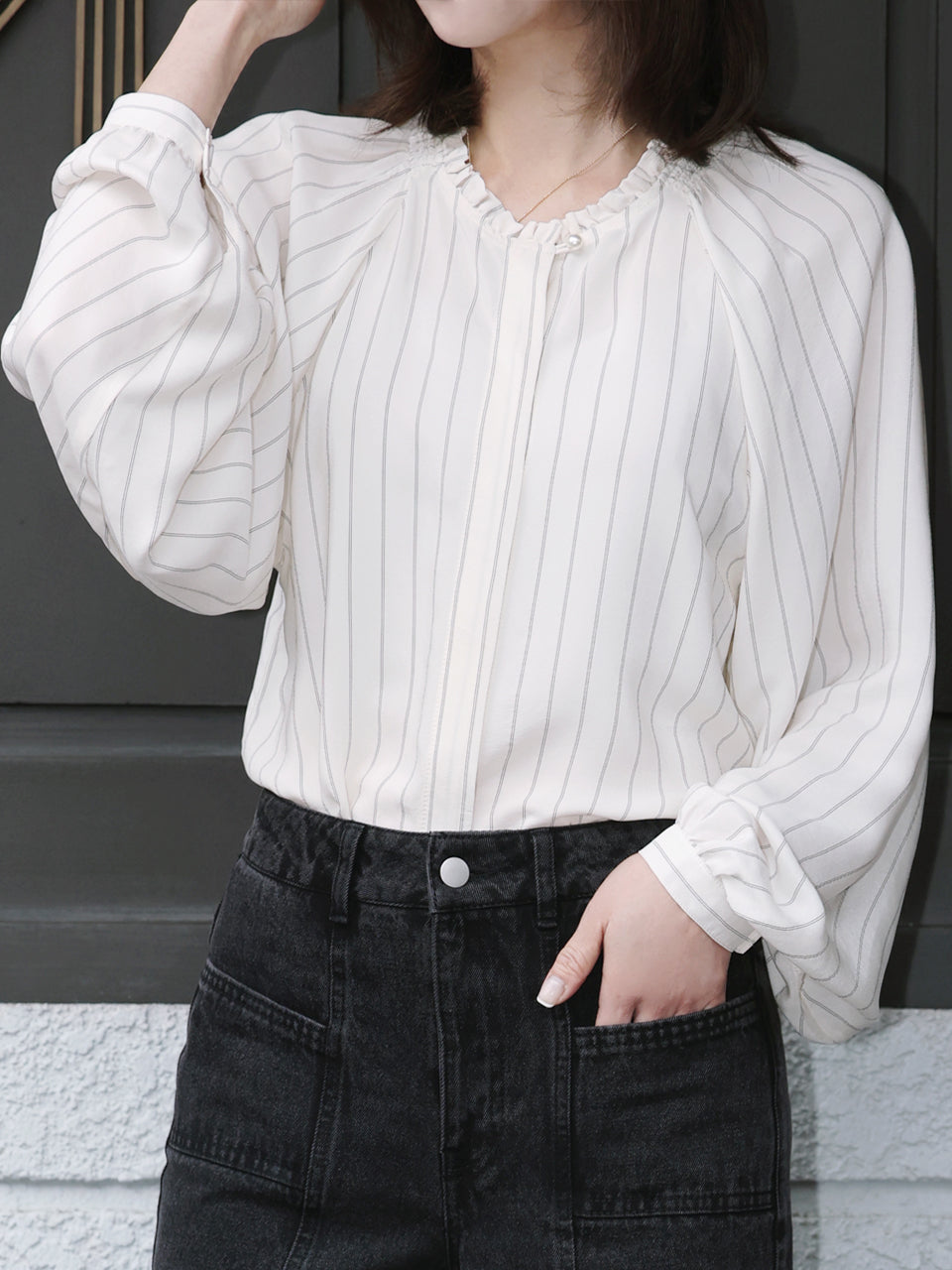 Classic Stripe Ruffle Collar Balloon Raglan Sleeve Silky Blouse