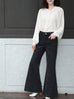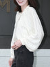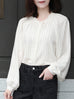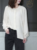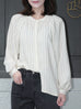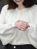 Featuring a delicate pleated ruffle neckline with a pearly button, billowy raglan sleeves, and hidden placket buttons for a sleek finish. Its silky, lightweight fabric drapes beautifully—perfect for layering from spring to autumn or staying chic on sunny days. Don't wait—shop now and elevate your wardrobe! Available in Playful People Print and this Classic Stripe.