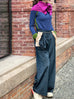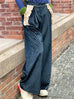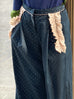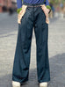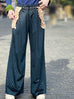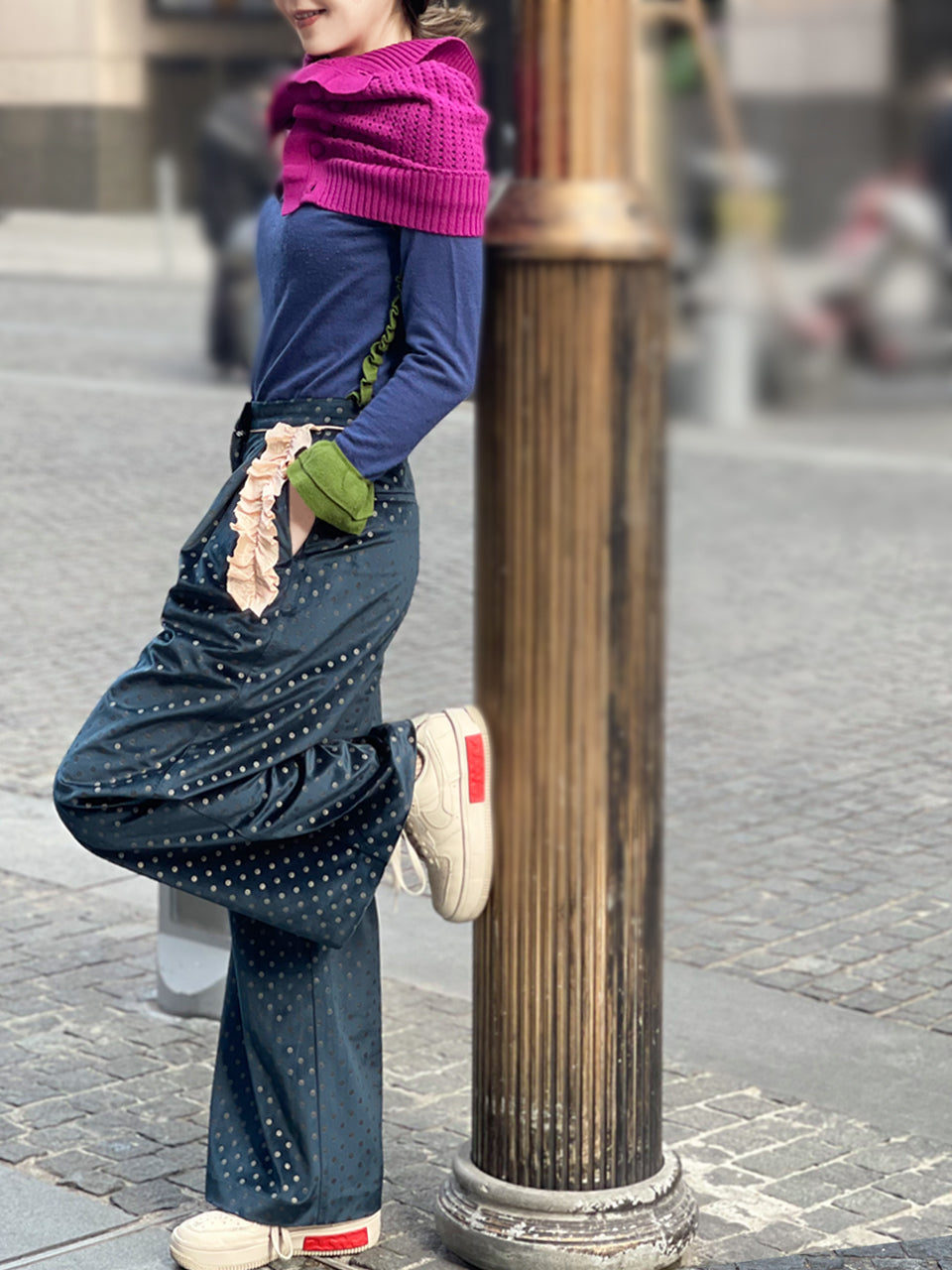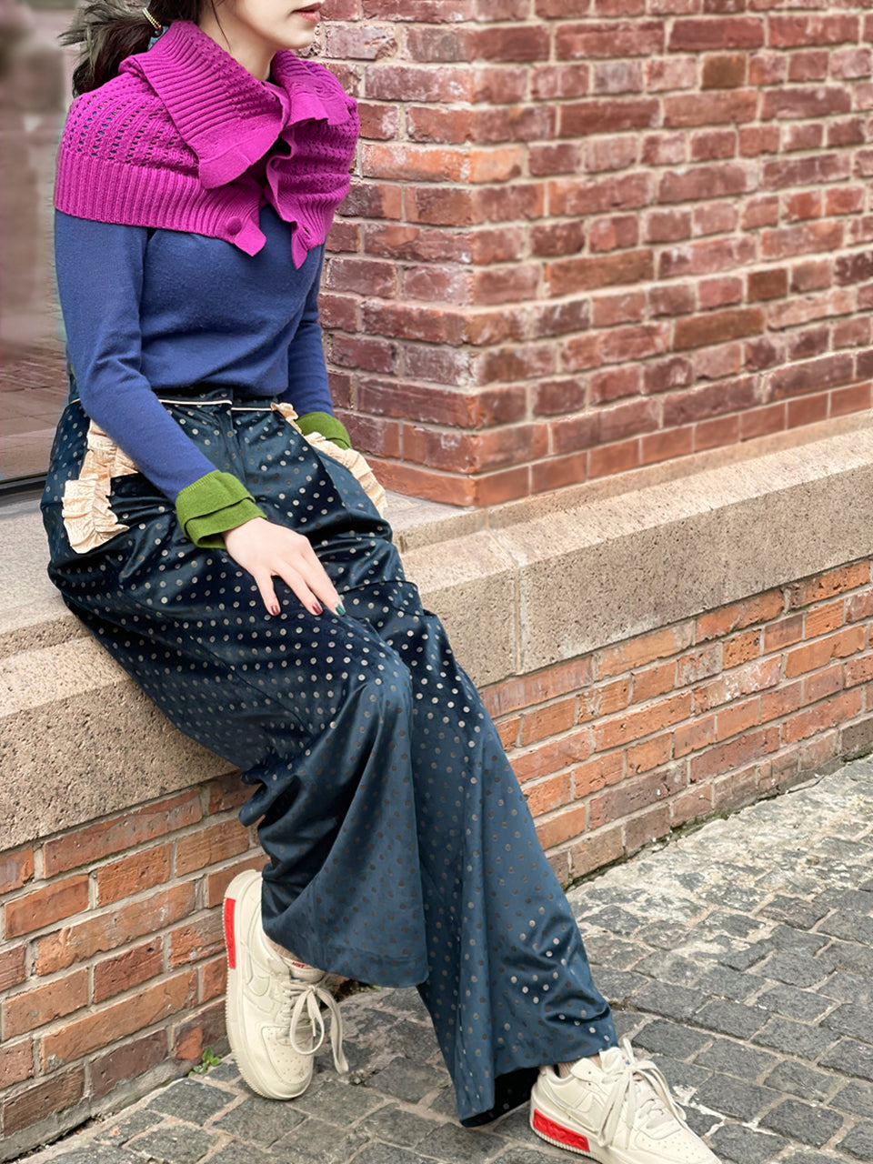 驚喜促銷!青色圓點荷葉邊口袋寬腿天鵝絨長褲
