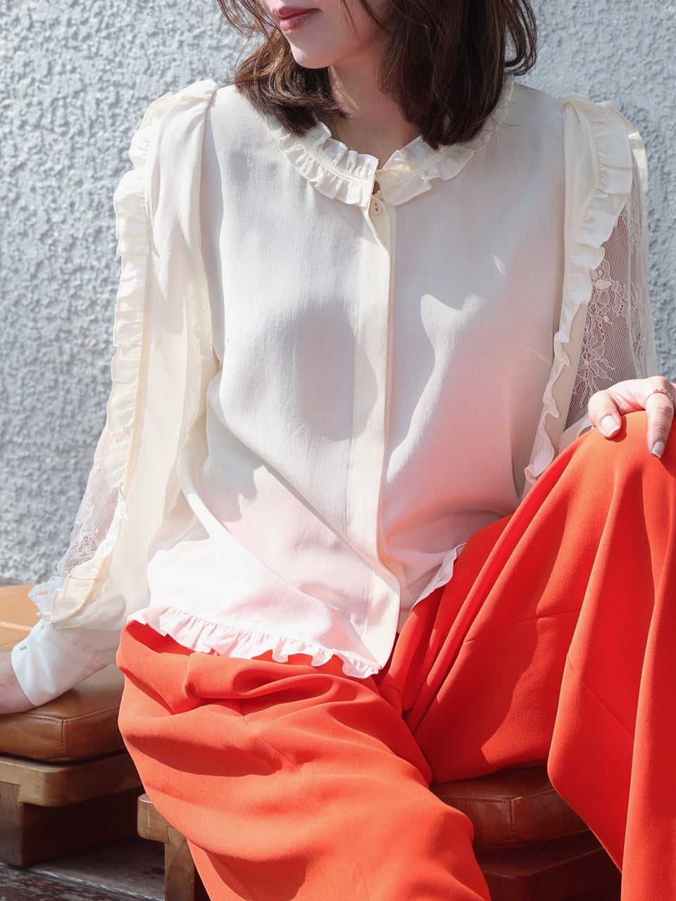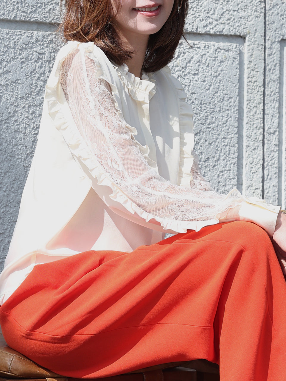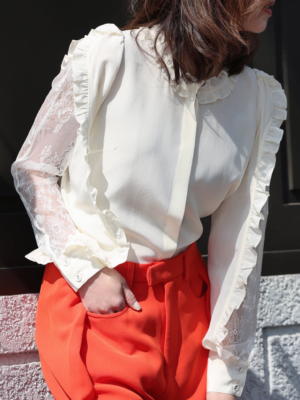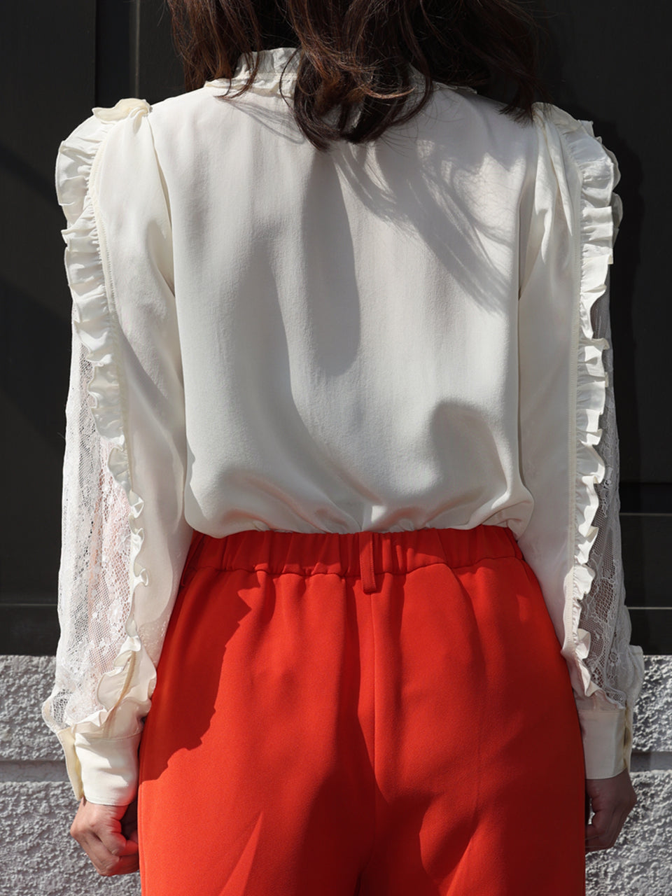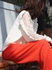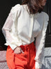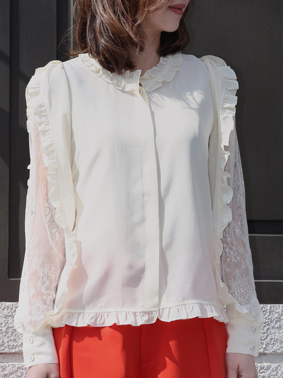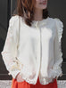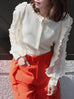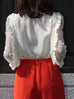 白色蕾絲分層袖荷葉邊奢華絲質襯衫
